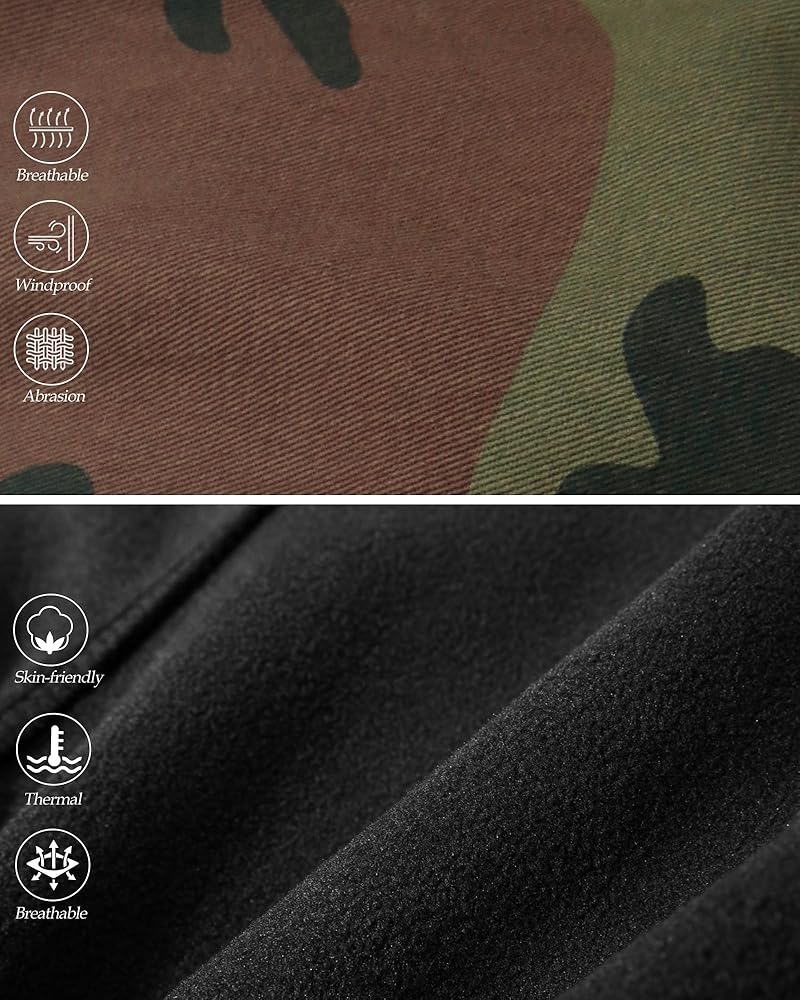 FABRIC FEATHURES: Made with a 100% cotton outer shell and soft fleece polyester lining, these men's cargo pants offer soft, warm comfort without sacrificing breathability. The fleece liner provides just the right amount of insulation for chilly days, while the cotton exterior keeps air flowing. As a mens cargo pants relaxed fit , they provide cozy warmth while remaining a lightweight, breathable cold weather pant.