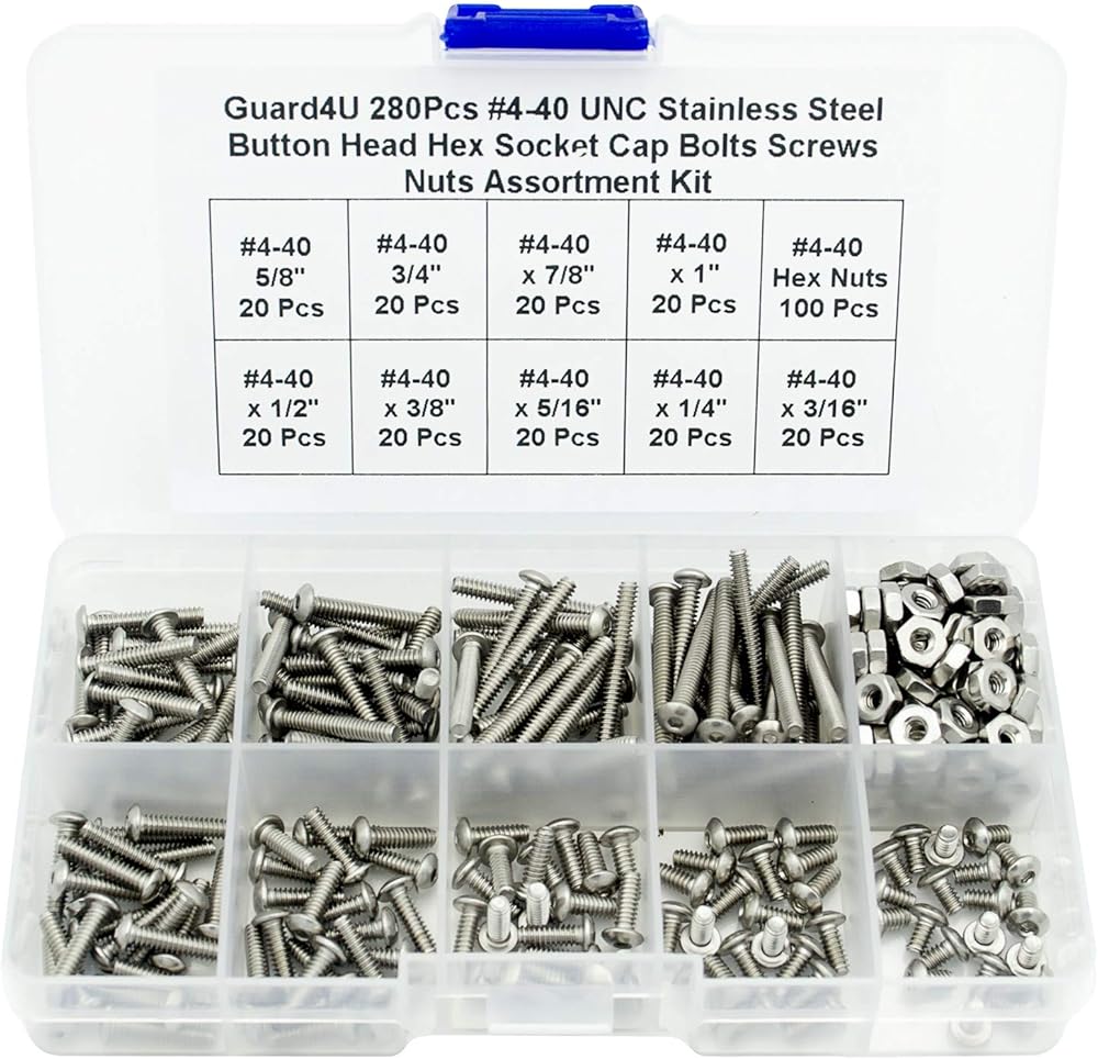 High Quality Precision #8-32 UNC Stainless Steel Button Head Hex Socket Cap Bolts Screws Nuts Assortment Kit,Meets ANSIB18.3BT specifications.