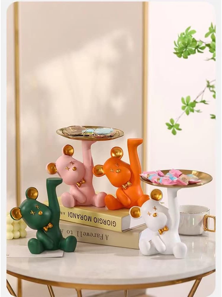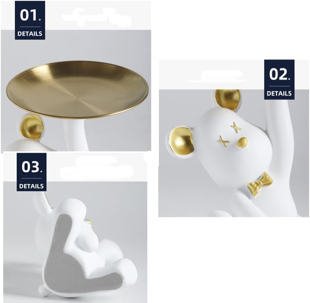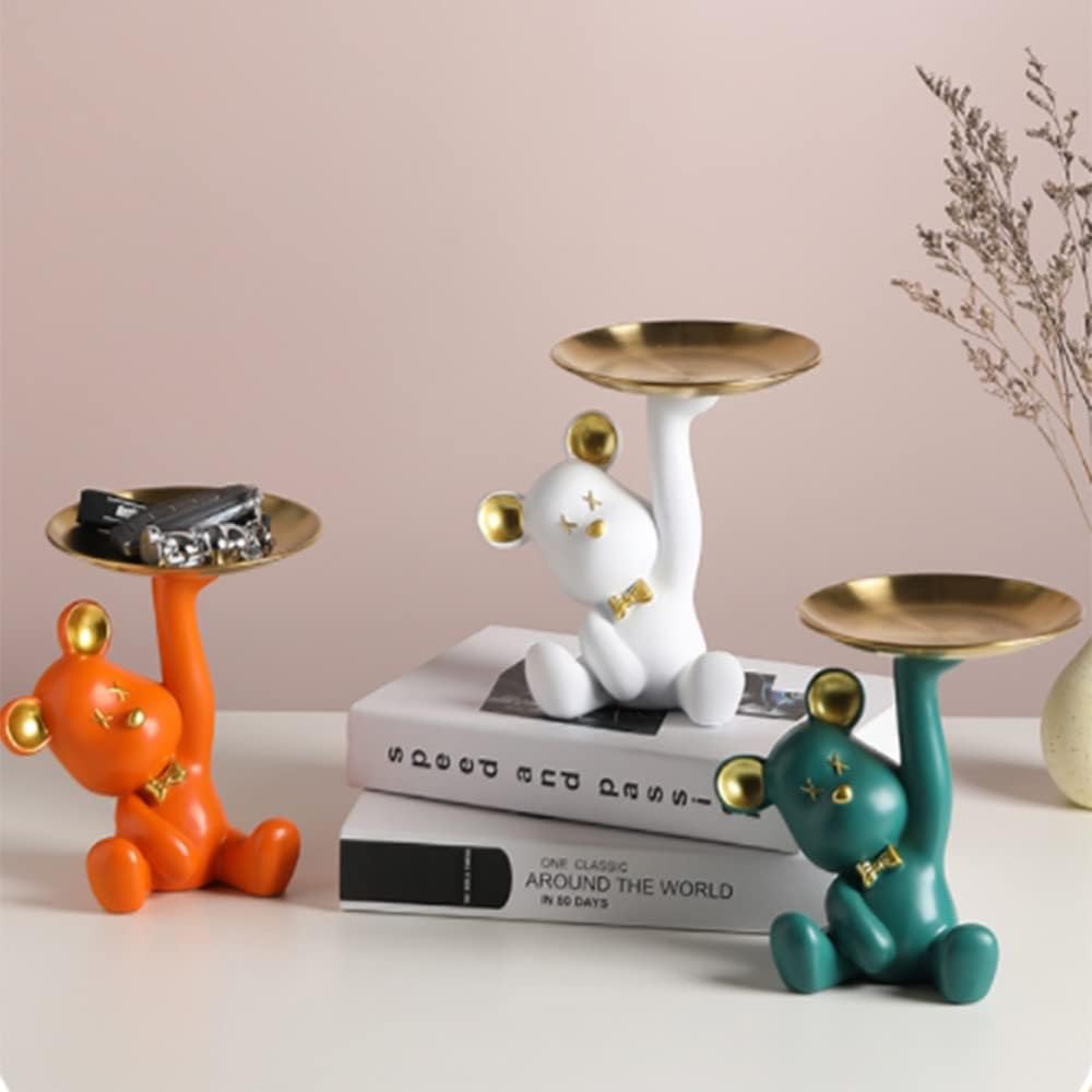 【Win Two Birds with One Stone】 The exquisitely crafted bear shape is matched with a metal storage tray. It can not only decorate the space, but also store items.