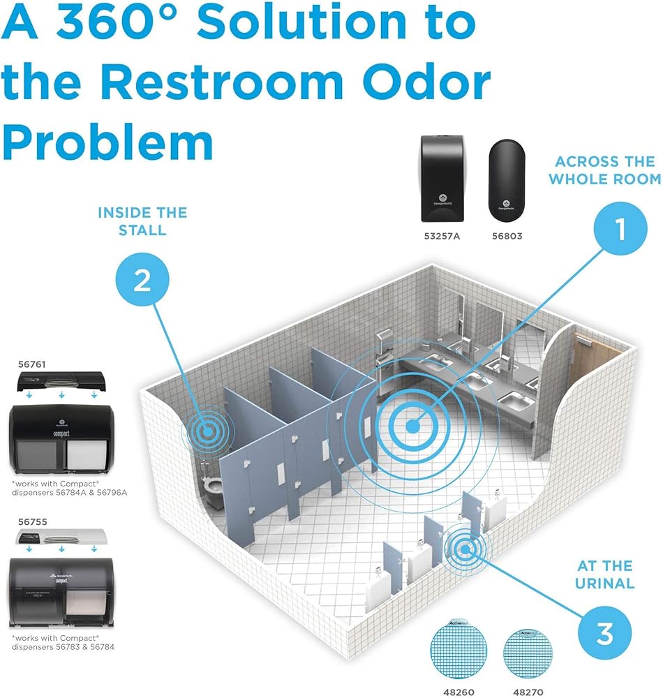 ActiveAire Air Care Systems elevate the restroom experience with coordinating scents in the stall, on the wall and at the urinal. The collection includes Automated Air Freshener Dispensers that are compatible with Compact Toilet Paper Dispensers, Stand-Alone Automated In-Stall Freshener Dispensers, Powered and Passive Whole-Room Air Freshener Dispensers and Low-Splash and traditional Deodorizer Urinal Screens. Dispenser refills and the urinal screens are available in a variety of scents, providing consistent, pleasant fragrance throughout the restroom. Your customers will never experience conflicting scents; instead, they can enjoy a single satisfying scent across the whole restroom. Odor is the #2 problem with public restrooms that users wish could be solved.* Designed for use in offices, restaurants, healthcare, industrial and educational facilities, ActiveAire products help you minimize customer complaints while showing customers that you care. GP PRO is a division of Georgia-Pacific Consumer Products. We deliver well-designed, durable and easy-to-maintain professional solutions to meet the handwashing and cleaning needs for a range of business applications. *GP PRO Proprietary Research: PRO-18-1945