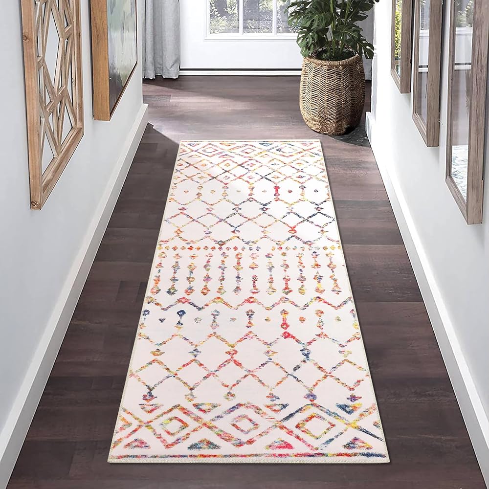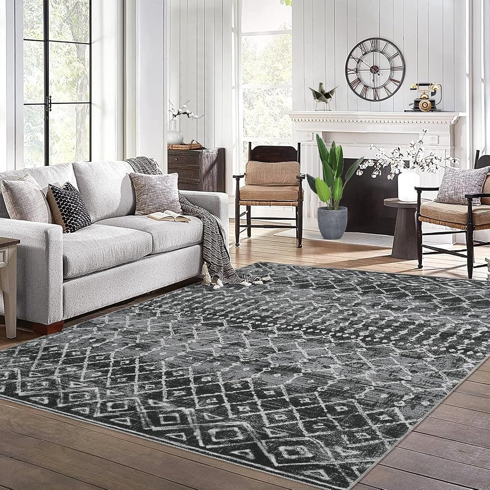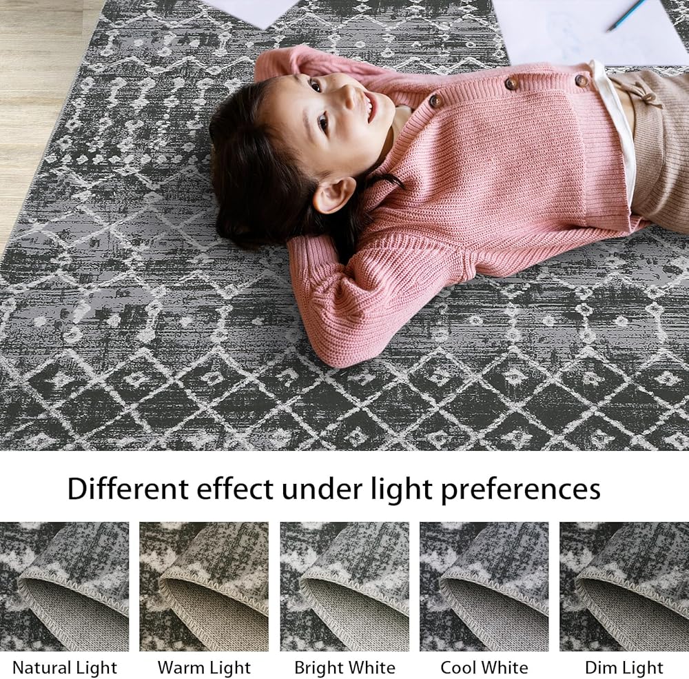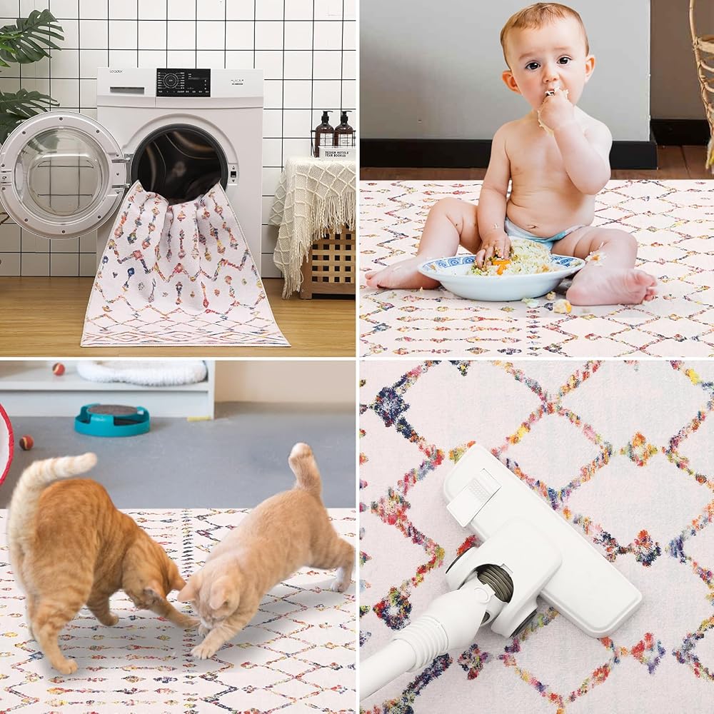 Modern Boho Moroccan Design: This area rug grounds your space in a subtle boho moroccan design. Our washable rug features an minimalist geometry distressed pattern that complements any room with stylish color scheme. Boho inspired patterned area rug elevates the ambiance of any room it's placed in and fits right in many decorating styles, farmhouse style, classical European style and so on.