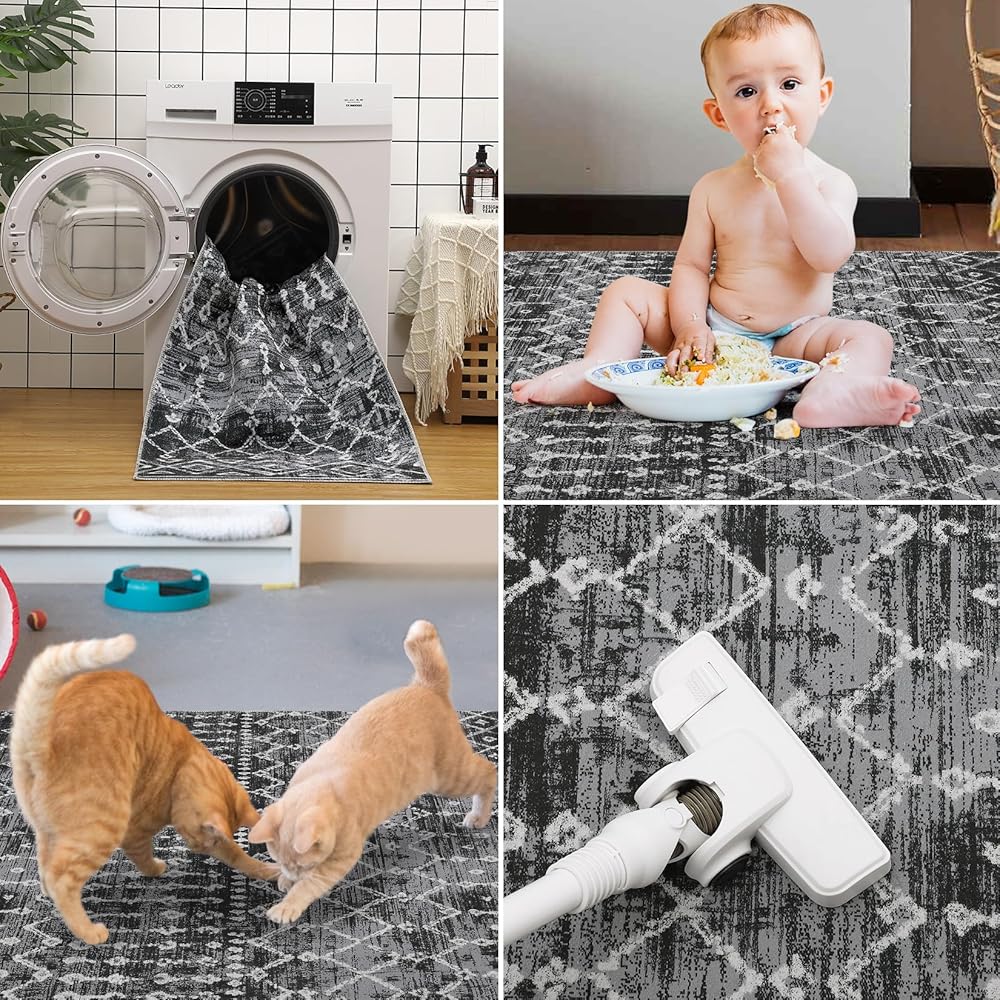 Non-Slip & Stain Resistant Rug: Our area rug features anti-slip TPR backing that can help to stay in place well, sufficient grip to prevent dangerous slides and slips, safe for everyday indoor or outdoor busy area. With the stain-resistant and washable rug, you can simply toss it into your washing machine and keep it fresh after every wash.