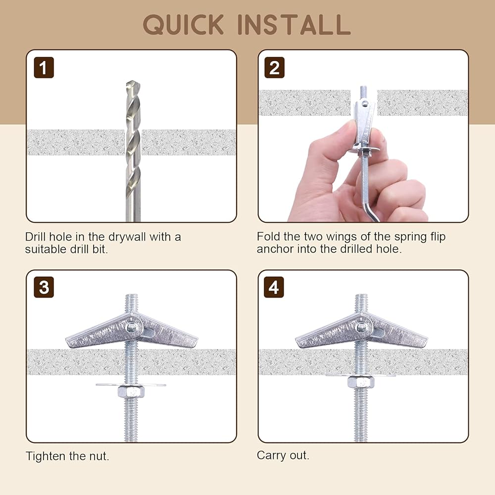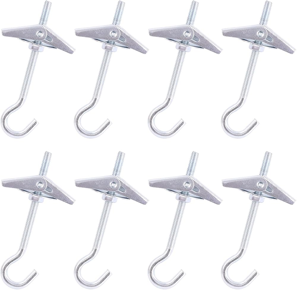 ✔ 1, Durable house hardware: hooks are made of metal, which is durable and sturdy, the toggle wings may spread the load over a wider area, suitable for mounting the swag hooks onto hollow walls.