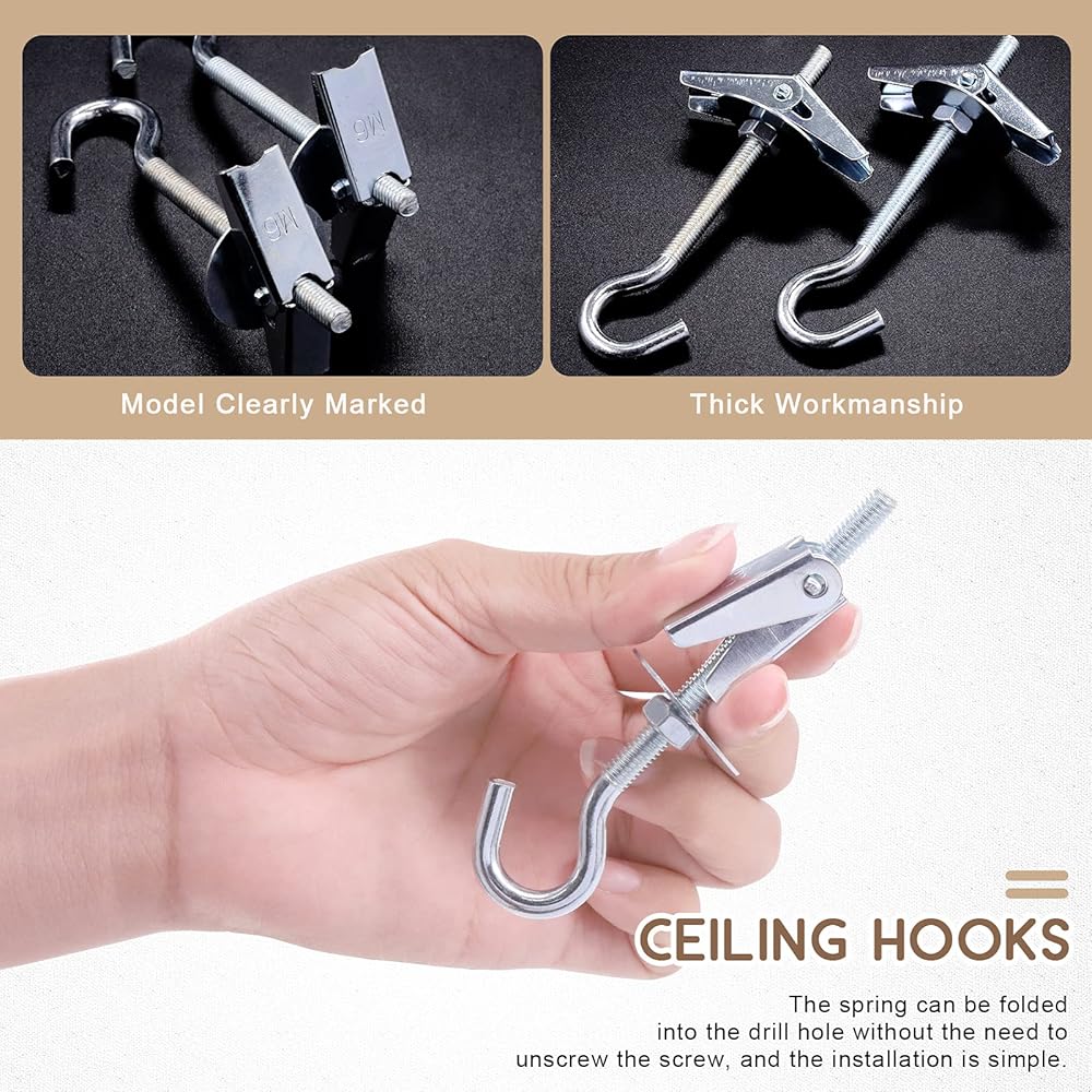 ✔ 4, Multi uses on hollow walls,up to 20-pound weight capacity per Ceiling Hook;Hole diameter:0.55inch-0.63inch/1.45cm-1.5cm to insert the toggle wings.