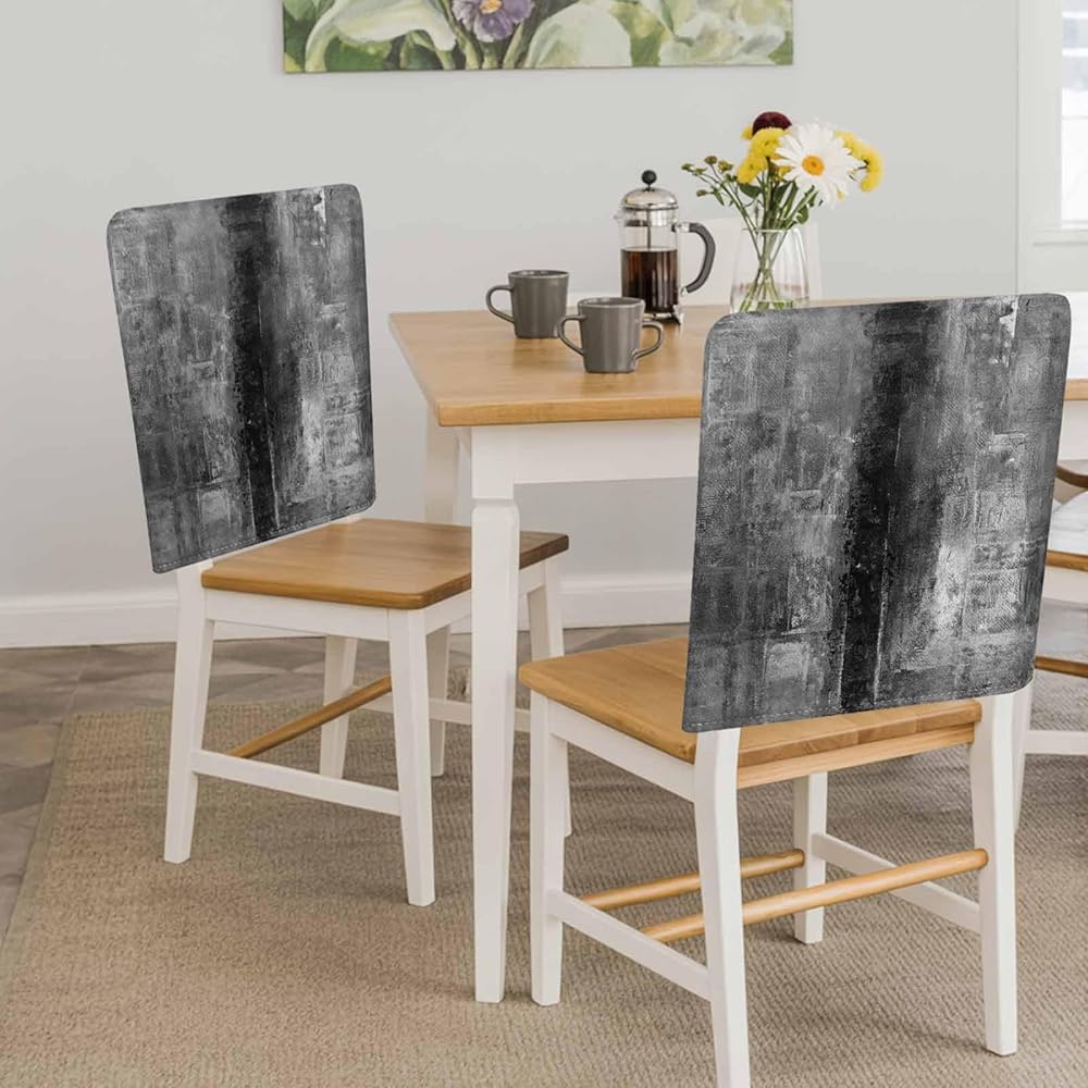4 Packs Black Grey Painted Dining Chair Back Cover, Decorative Kitchen Dinner Chair Seat Covers Washable Chair Slip Covers,Slipcovers Protect for Dinning Room Abstract Contemporary Smear Graffiti Art