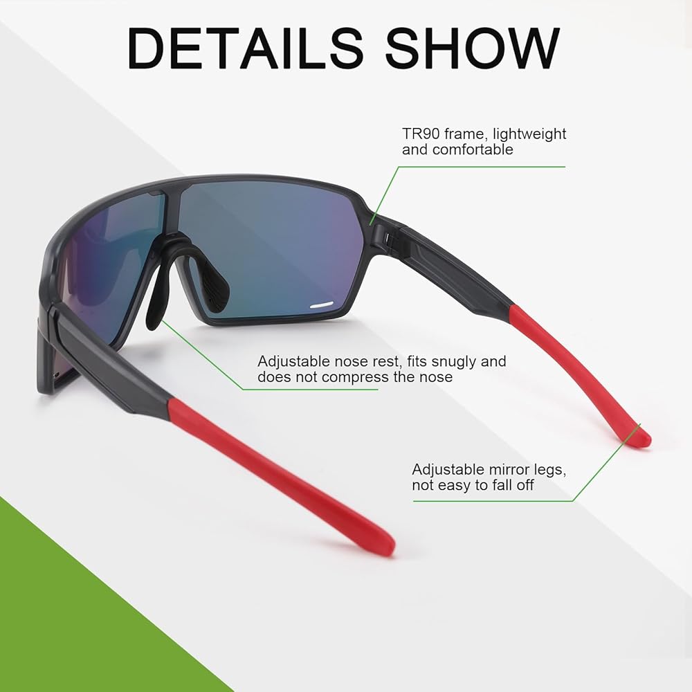 【Multifunctional Occasions】Sports sunglasses can be used for various activities such as baseball, softball, cycling, fishing, driving, skiing, running, racing, rowing, and more. Enrich your sports life.