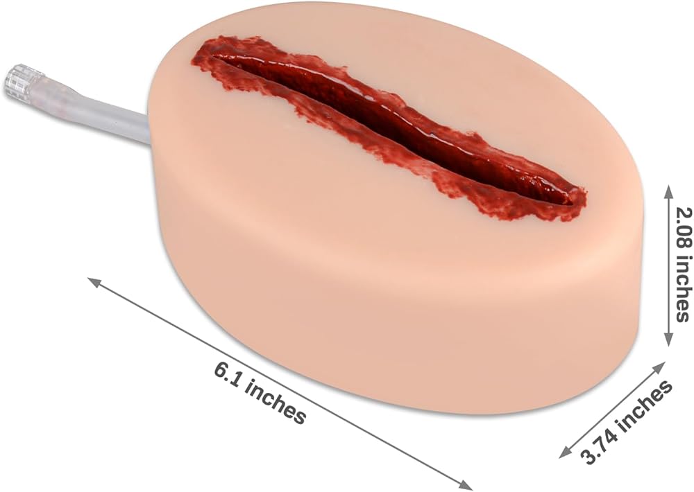 Wide Range of Applications: Laceration Wound Packing Trainer kit can be used in medical facilities, emergency response training centers, medical schools, or healthcare teams to provide practical training opportunities and help individuals learn how to properly manage wounds and control bleeding, thereby enhancing their ability to respond to wound management and emergency situations.