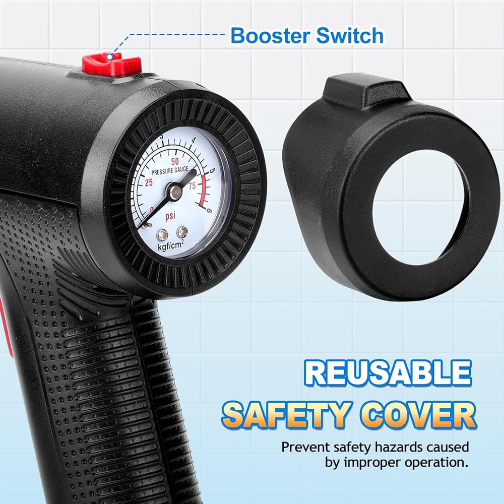 【Safety Protection】Our power plunger has a put misoperation start switch and pressure indicator, cover back the cover after use to prevent safety hazards caused by improper operation.