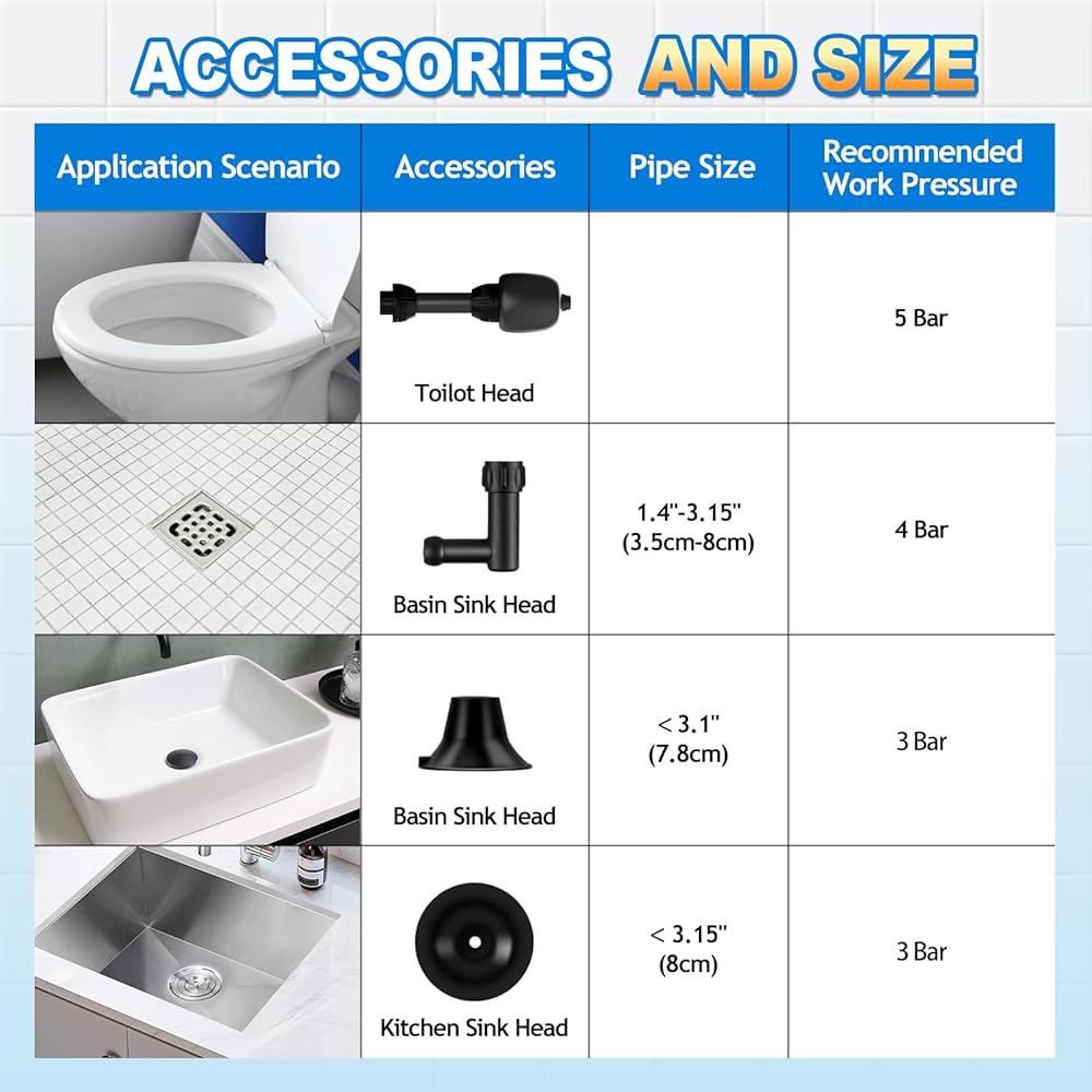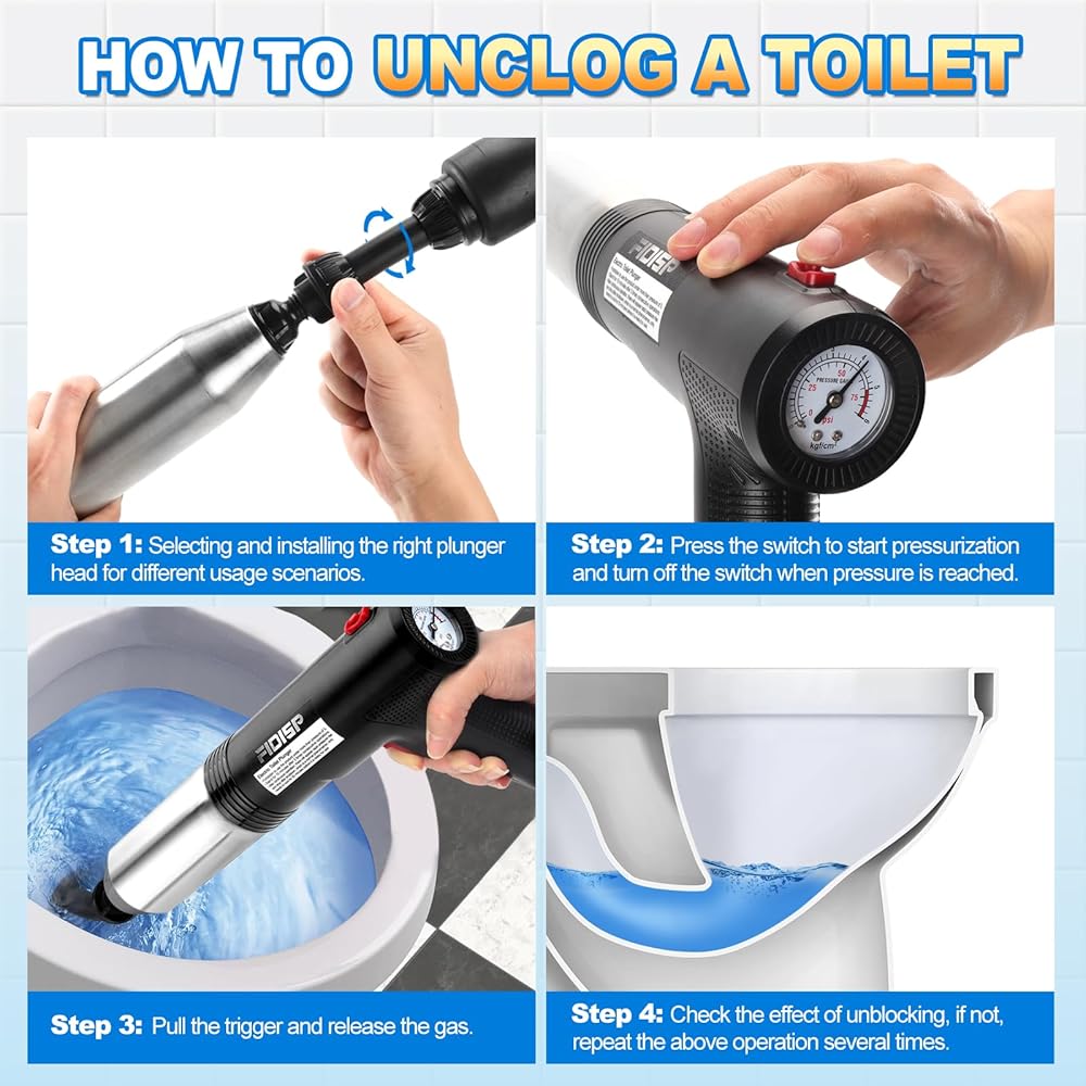 【Easy to Operate】Air plunger for toilet utilize the power of compressed air to efficiently remove clogs, much easier than plunging or toilet auger, won't scratch the interior walls, are less expensive than calling a plumber. Help you solve your home's drainage problems.