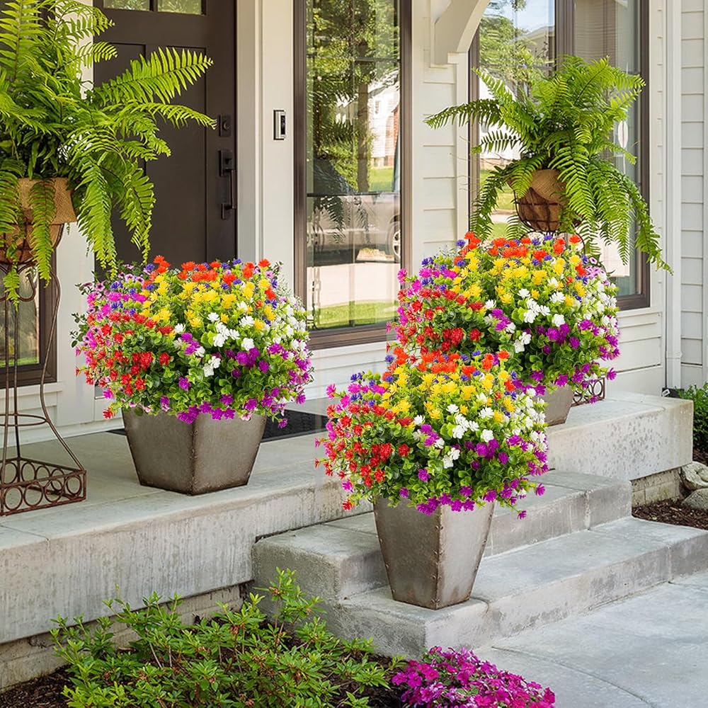 • Realistic Artificial Plants Outdoor: These fake outdoor flowers are carefully crafted to look like real flowers, with bright colors and vitality, making them a great decoration for your home, garden, patio, balcony, indoors and outdoors.
