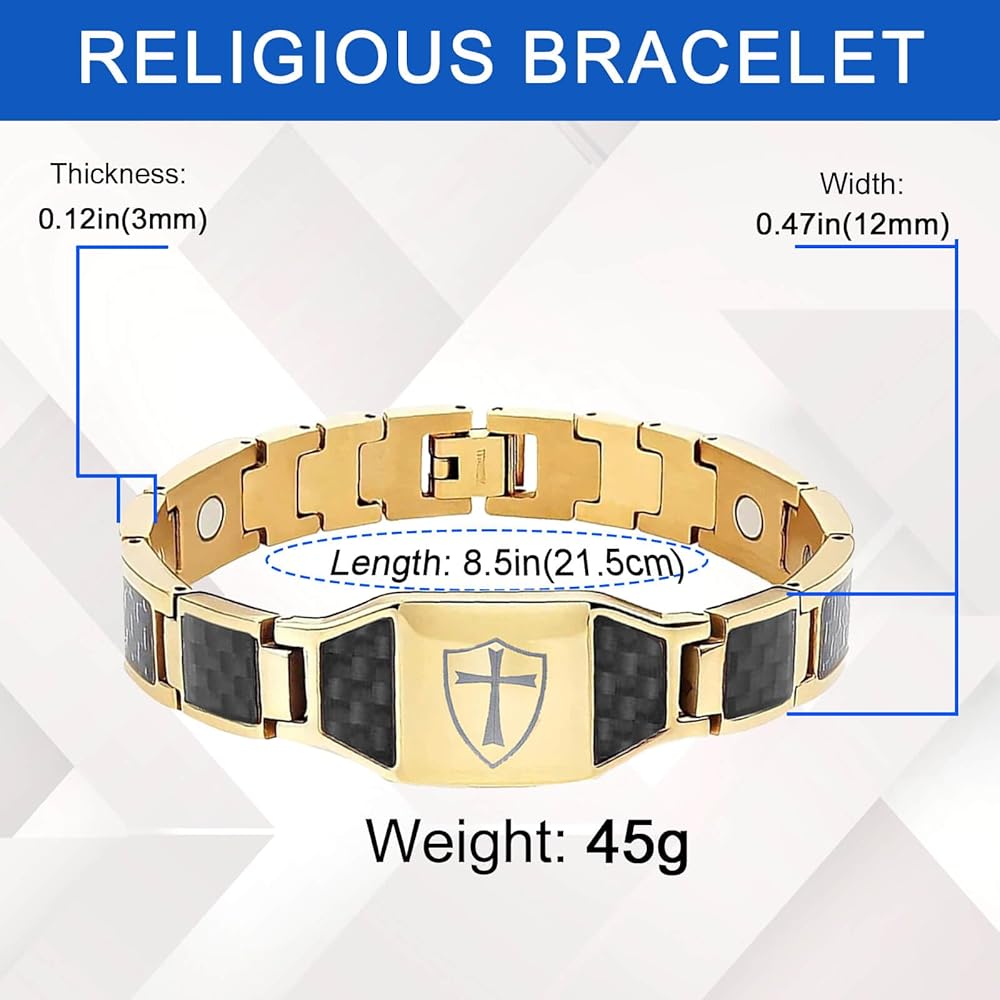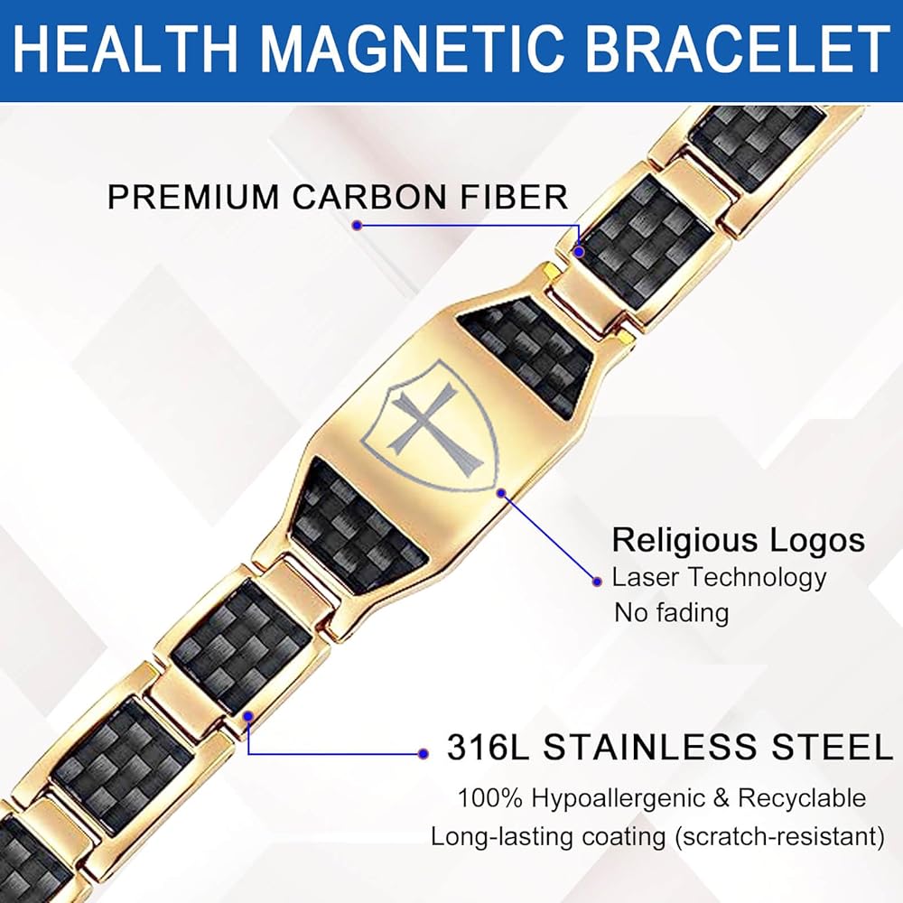 Magnetic Bracelet for Men for Arthritis, Christian Religious Cross Carbon Fiber Stainless Steel Bracelet