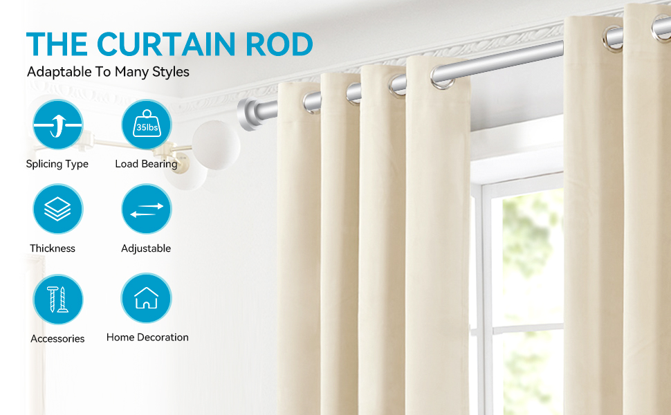 【Easy to assemble】The curtain rods feature a micro-threaded splice design for a perfect fit and effortless assembly.No nuts required, reducing processing and enhancing bending resistance.The micro-threaded design allows the rods to effortlessly slide any type of curtain, saving you time and effort when decorating your windows."