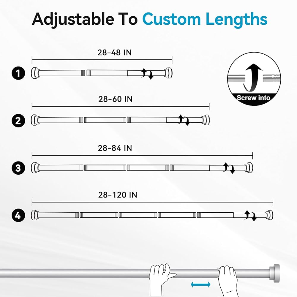 【Customizable size】Adjustable curtain rods can be easily customized to the desired length by adding or removing rods.The brackets can also be unfolded or folded to fit different window sizes and curtain thickness. The adjustable range is between 3.5 inches and 4.5 inches, ensuring the perfect aesthetic angle.
