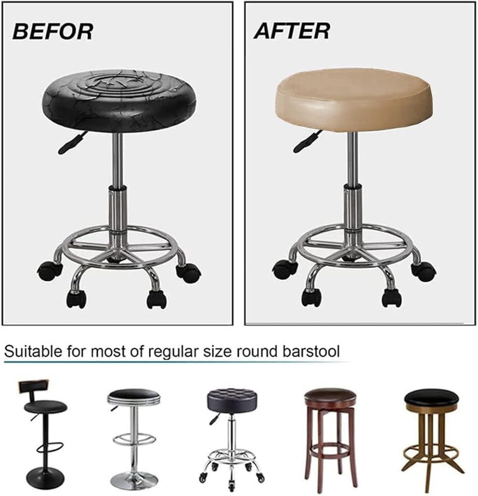 Stool Covers Round, Waterproof Replacement Removable PU Stretch Slipcover with Elastic Bands for 12-15 Inch Bar Stool, 2 Pack (Khaki)
