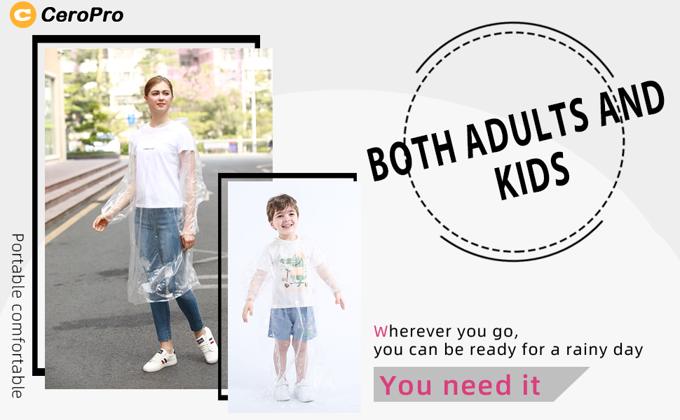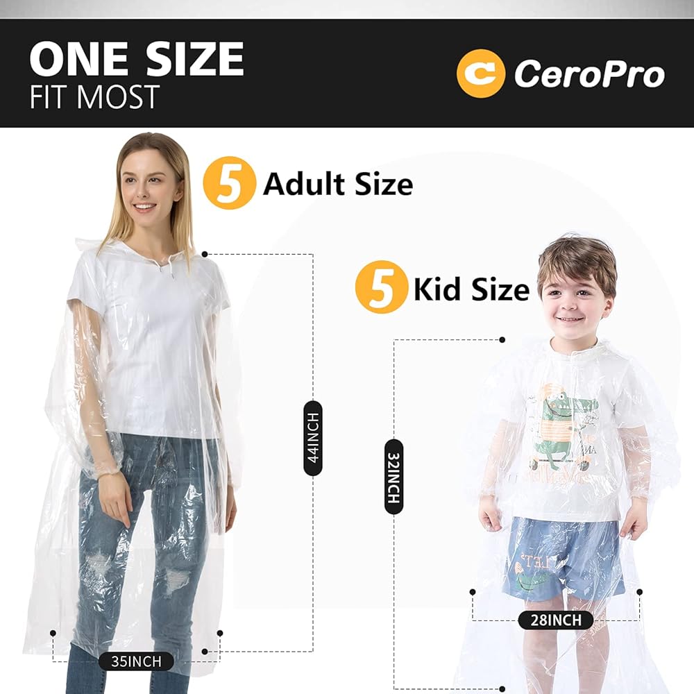 Disposable Rain Ponchos Family Pack Emergency Waterproof Clear Ponchos with Hood Disposable Raincoat 10 Pack (5 Adult 5 Kids)