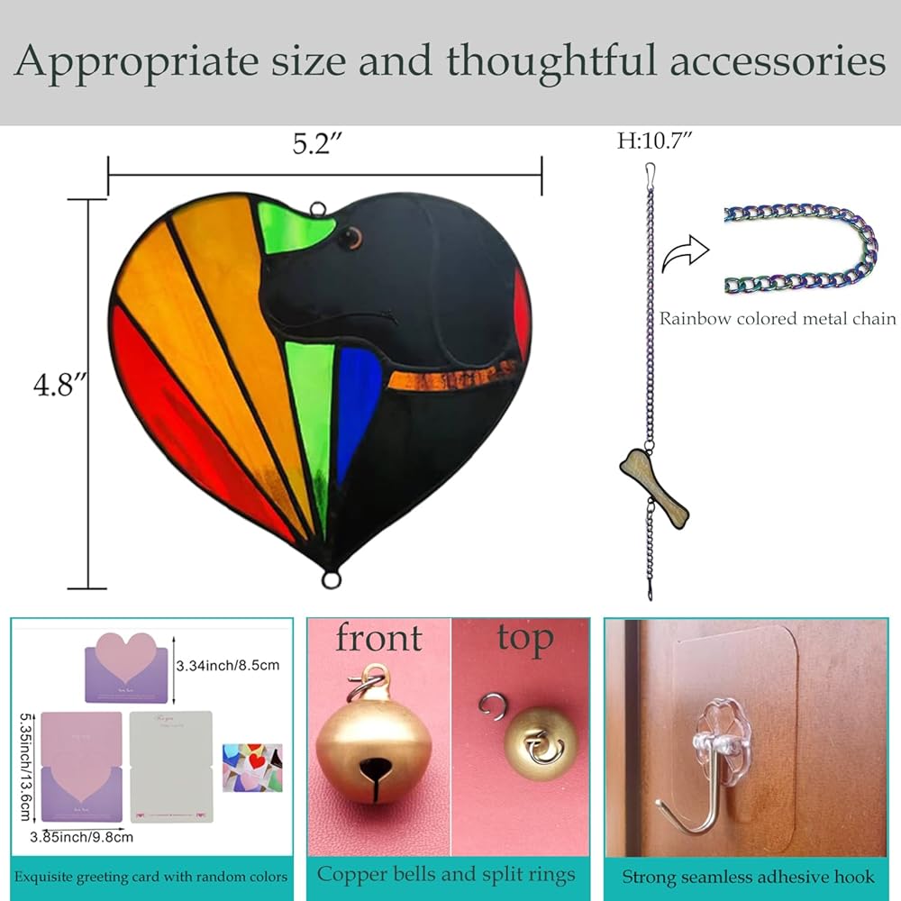 【Multi functional decorative piece 】This colored glass has a heart length of about 7.2 inches and a height of about 3 inches(excluding chains and pendants).Rainbow colored metal chains are securely attached to windows or walls through attached adhesive hooks for instant decorative flair, complementing any style of home.