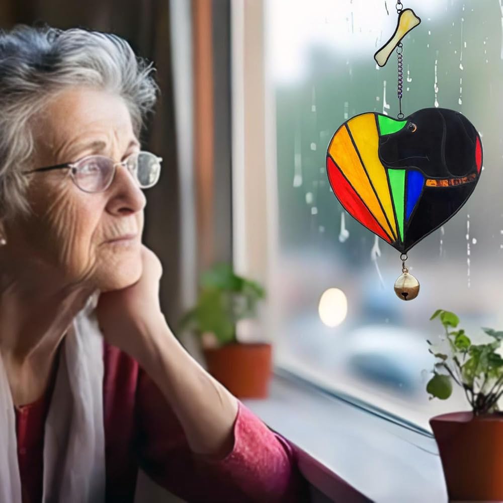 This stunning stained glass heart-shaped pendant is a beautiful addition to any home. Hanging on an exquisite rainbow colored metal chain, When sunlight passes through bright red, blue, and purple glass, the heart emits a colorful glow that brings a rainbow like rendering to your room. It is carefully crafted to bring color and personality to the windows, adding a sense of romance. This heart-shaped pendant is perfect for capturing sunlight, and its charming design keeps you energized. Hang it on your window or above your favorite reading corner for a hint of brightness. This is a thoughtful gift for the person you love, no matter where you place it, it will add to your imagination. This cute colored glass sheet is about 7.2 inches long and can bring warmth all year round.