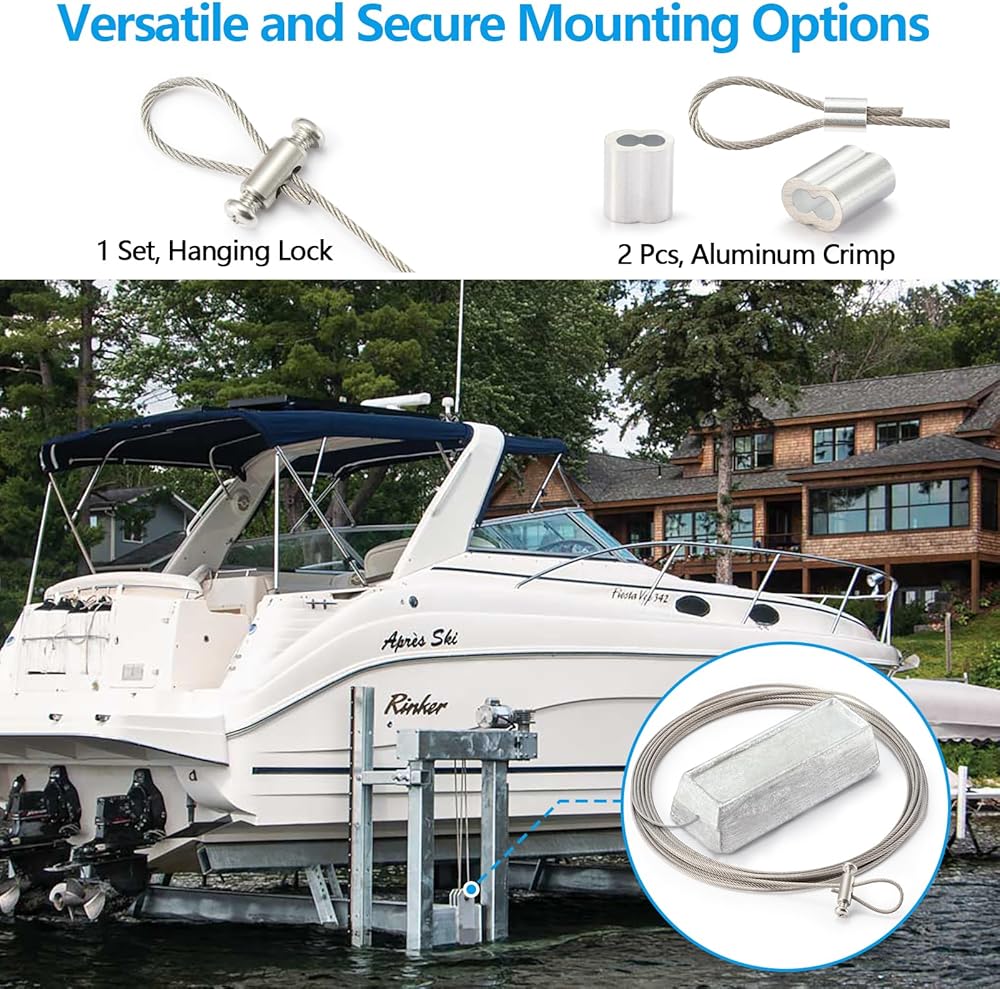 Durable Stainless Steel Cable | Equipped with a 20-ft 316L stainless steel cable, ensuring robust and long-lasting attachment to your marine structures. With 3 Cable Crimps for quick installation, perfect for use as Marine Hardware such as boat zincs.