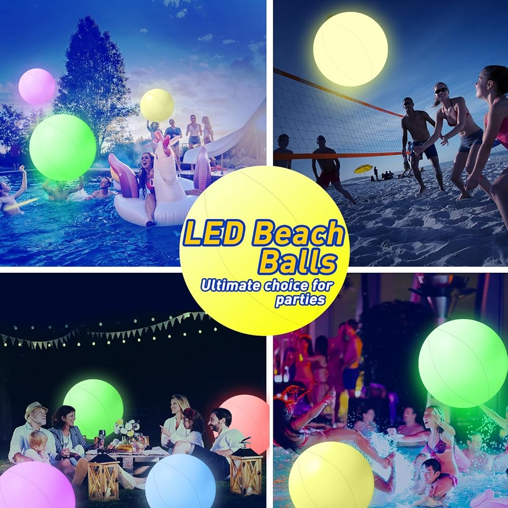 Light Up Beach Balls-Add Fun For Parties: Light up beach balls can change multi colors with remote control. 16 colors LED glow balls also can be decoration,120% BRIGHTER and 10% THICKER than the others! Just turn on the light and start your magic night!