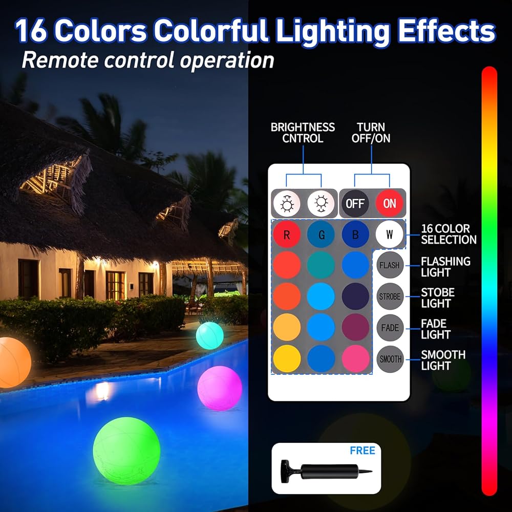 WEEKSUN Pool Toys-Complete Accessories, Easy To Use: Our pool toys product come with 5* beach ball, 5* LED module, 5 * remote control and 1 handheld pump. Make you more efficient and convenient in the process of inflation and use.