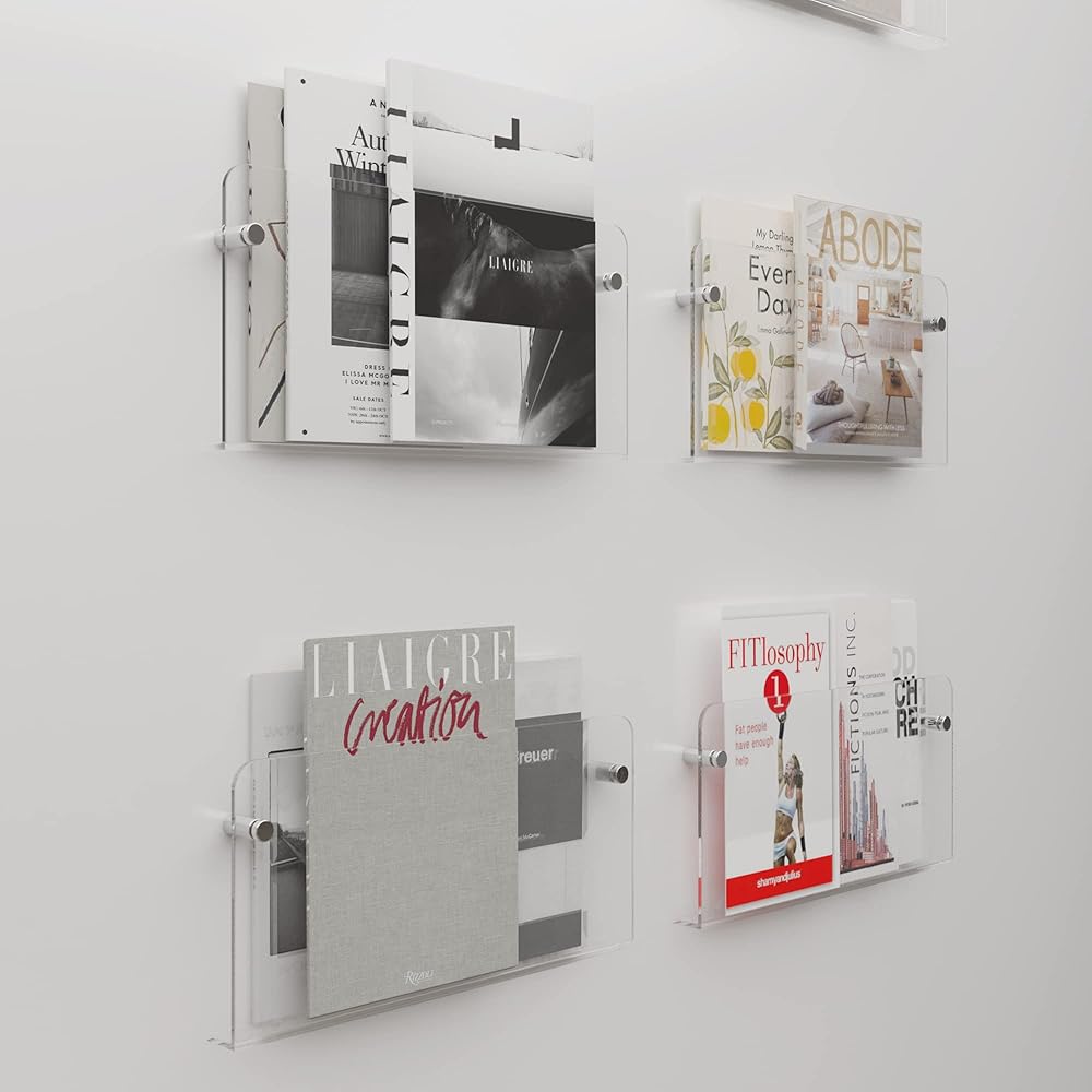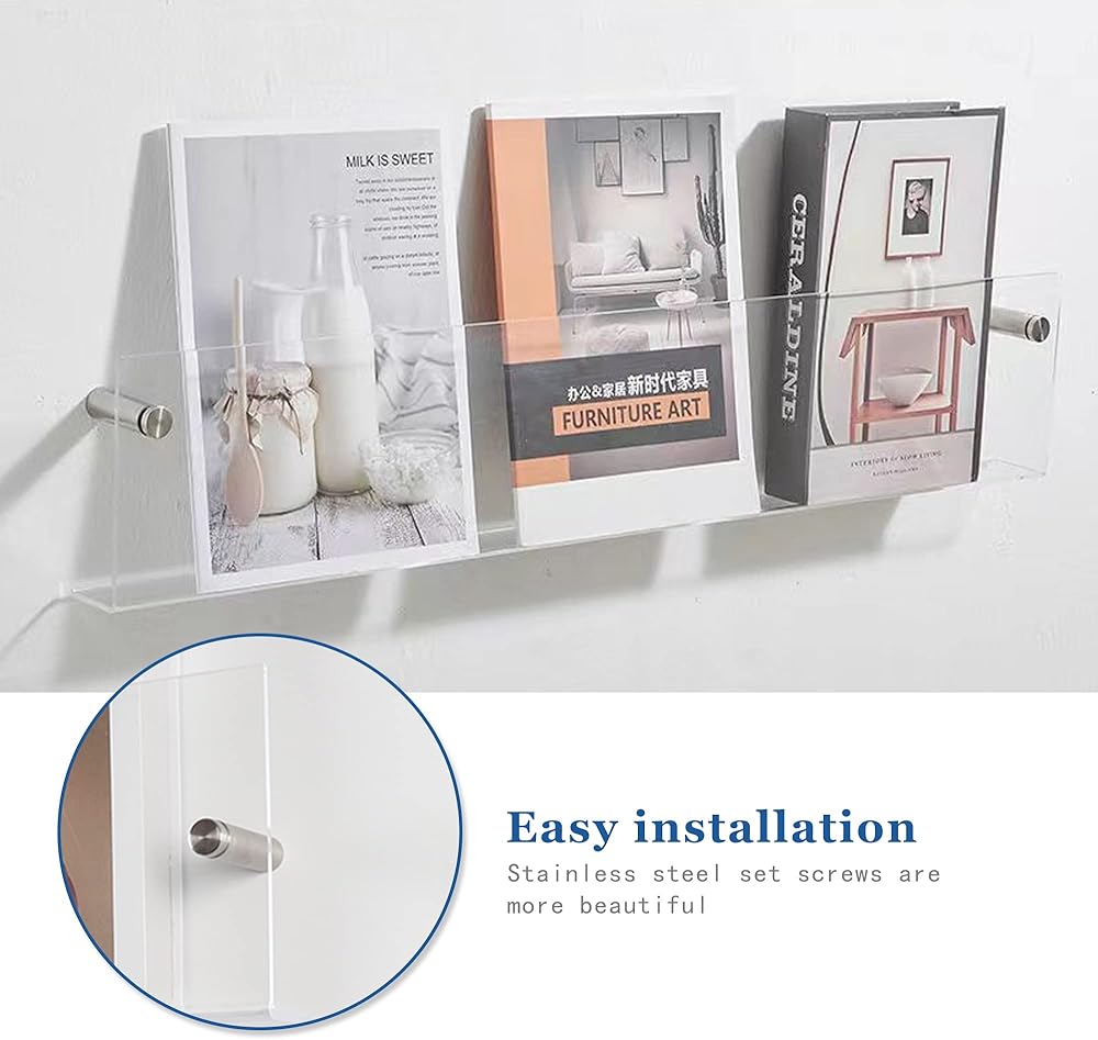 【 Easy To Assemble】- These acrylic shelves magazine holders come with all necessary hardware, and only needs a simple installation then there are nice floating shelves to display and organize your kids' books, magazines, literature, brochure, and paper.