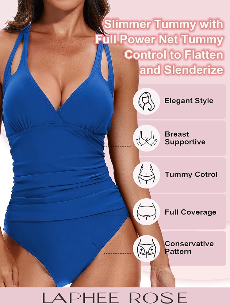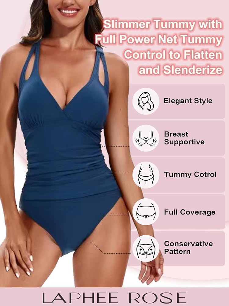High tech four-way elastic fabric: This women's tummy control swimsuits is made of refined high-tech four-way elastic fabric, which moves smoothly with the body without feeling constrained, and maintains its shape over time. The slim fit and super soft feeling are like your second layer of skin, almost giving you no feeling.