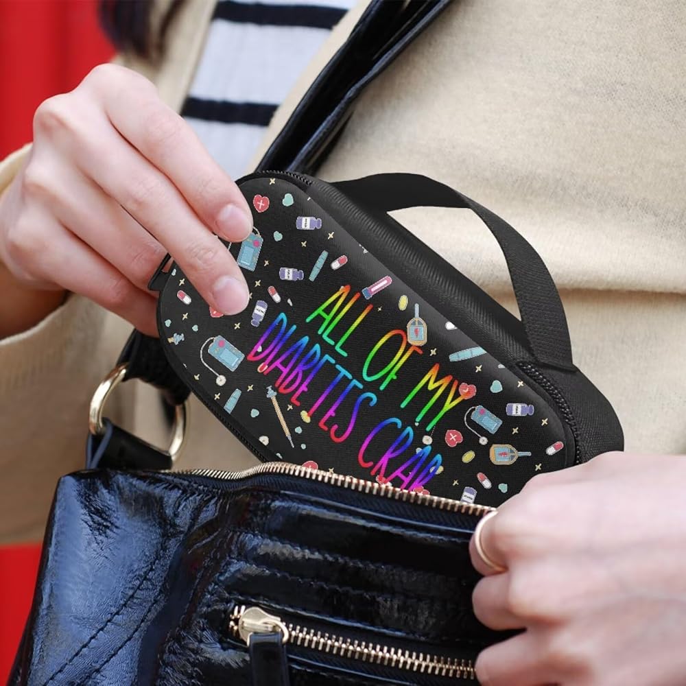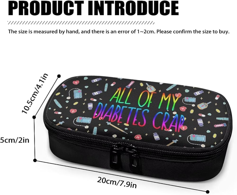 The diabetic supplies organizer bag external dimension: 7.9 x 4.1 x 2 inch. portable diabetic supplies carrying case for insulin syringe, needles, blood glucose meters, lancets, testing strips, alcohol wipes and other diabetic testing accessories.
