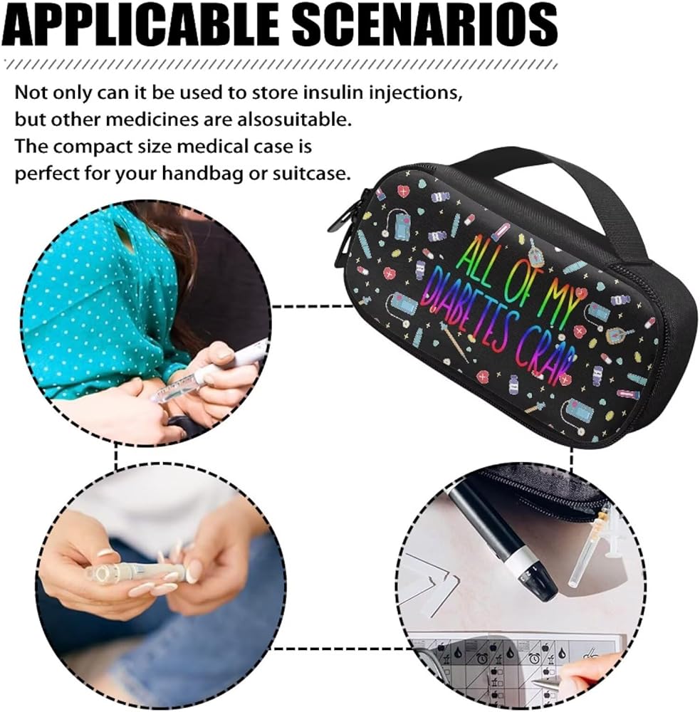 This diabetic supplies organizer is made of Polyester and Aluminum foil, semi-waterproof, drop-resistant and not easy to deform. Strong and durable material with padded foam around to protect all the things inside against scratches, dust, impacts and accidental dropping. Insulin pens case can provide perfect protection for your diabetic supplies in daily life and trip.