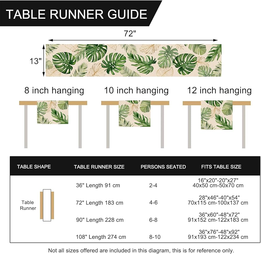 Seliem Summer Palm Leaves Tropical Greenery Table Runner, Monstera Home Kitchen Dining Plant Decor, Spring Seasonal Decorations Indoor Outdoor Hawaii Luau Anniversary Party Supply 13 x 72 Inch