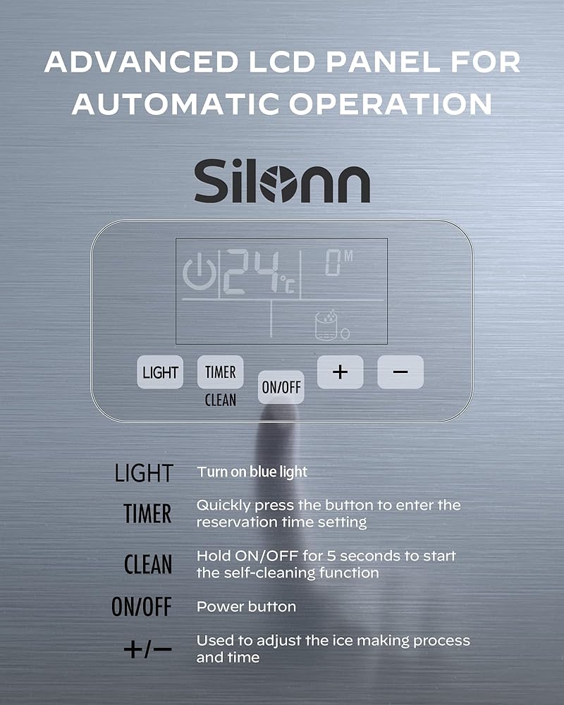SAFE GRADE & CONVENIENT: Silonn's ice machines are made of food-grade materials for your health and safety. The ice maker is easy to use with installation needed. The stainless steel surface is very modern and durable. We also include an ice basket and ice scoop for transferring ice.