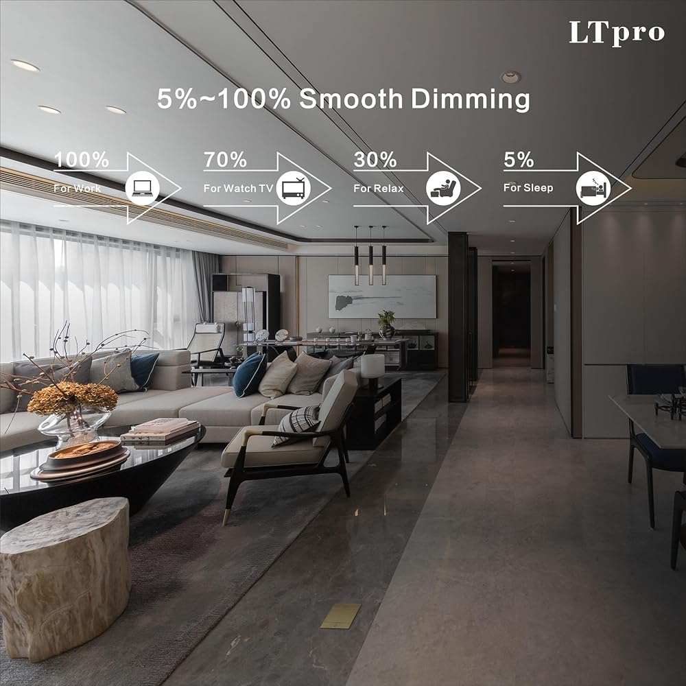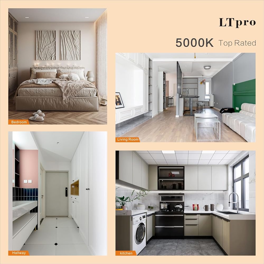 5CTT SELECTABLE: The 4 inch Square led recessed Ceiling lighting allowing you to choose from a range of color temperatures. The tuneable white features ranges from 2700K Soft White, 3000K Warm White, 3500K Neutral White, 4000K Cool White, or 5000K Daylight. You can effortlessly customize the lighting to suit your preference and create the perfect atmosphere for any occasion.