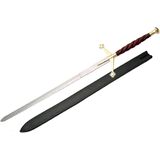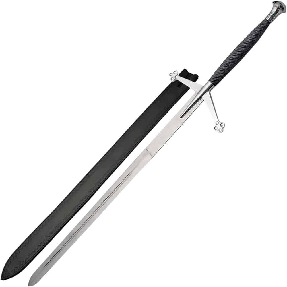 SZCO 52" Claymore Sword – Decorative Medieval Scottish Highland Replica Two-Handed Steel Sword for Adults with Spiral Wood Handle, with Guard & Pommel & Leather Sheath for Display