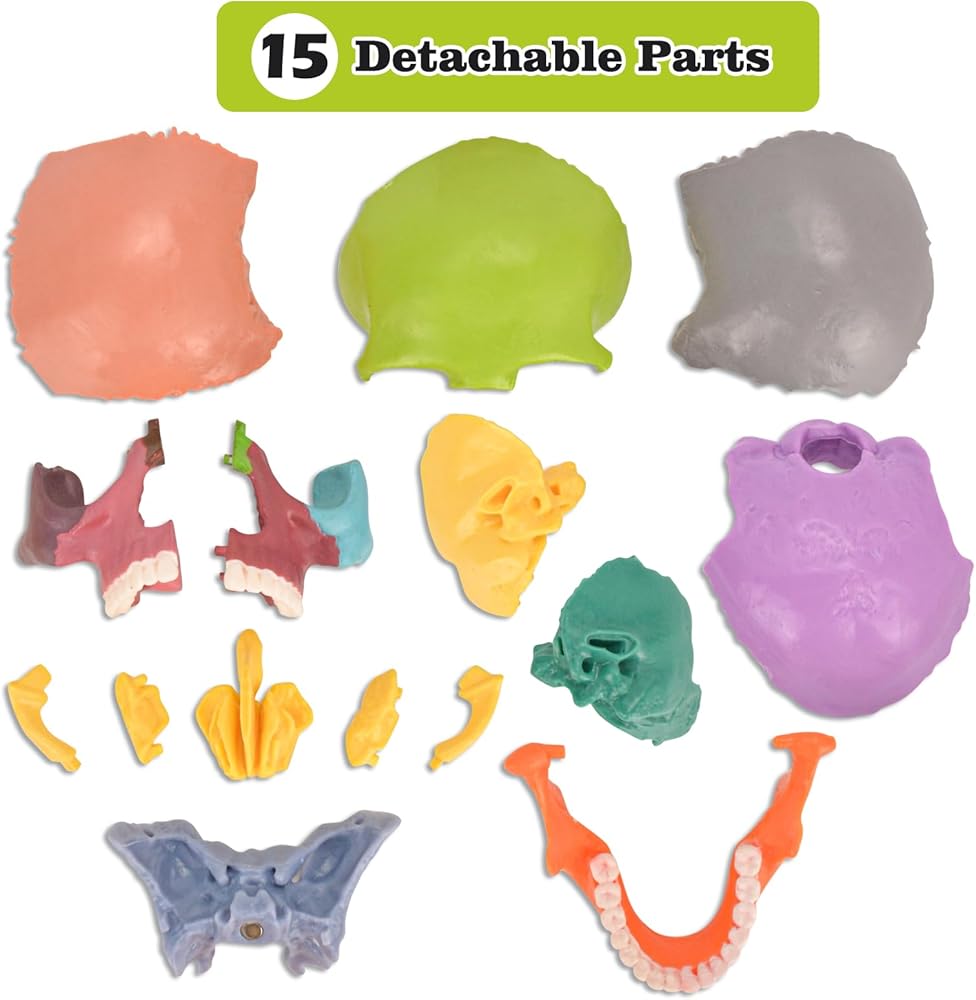 Detachable and Easy Reassembly: There are 15 detachable parts of skull. With magnetic connections, this exploded skull model is easy to assemble and disassemble, providing an interactive and hands-on learning experience.