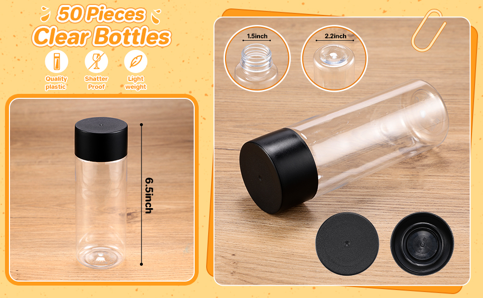 Package Include: you will receive 50 pieces juice water bottles from our package, these clear bottles are ideal drink container for home and store, the enough quantity can well meet your using demands