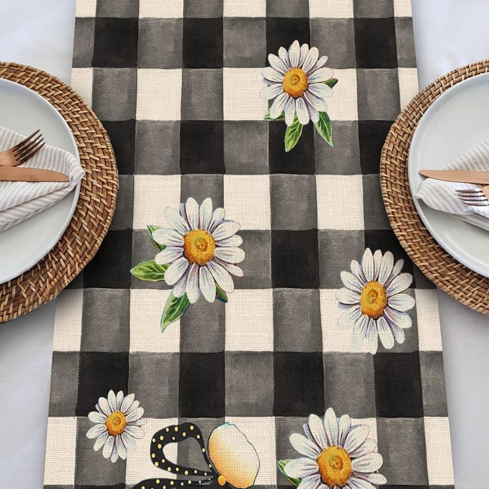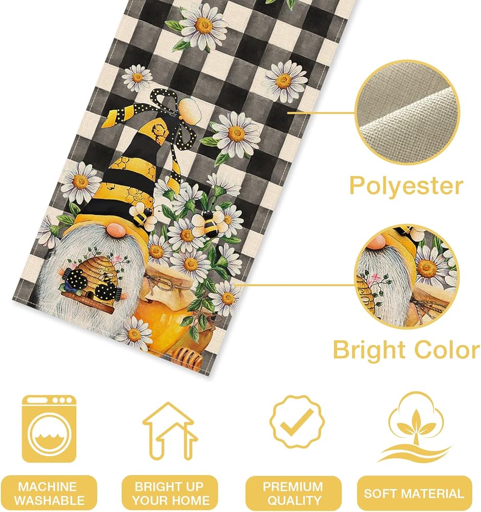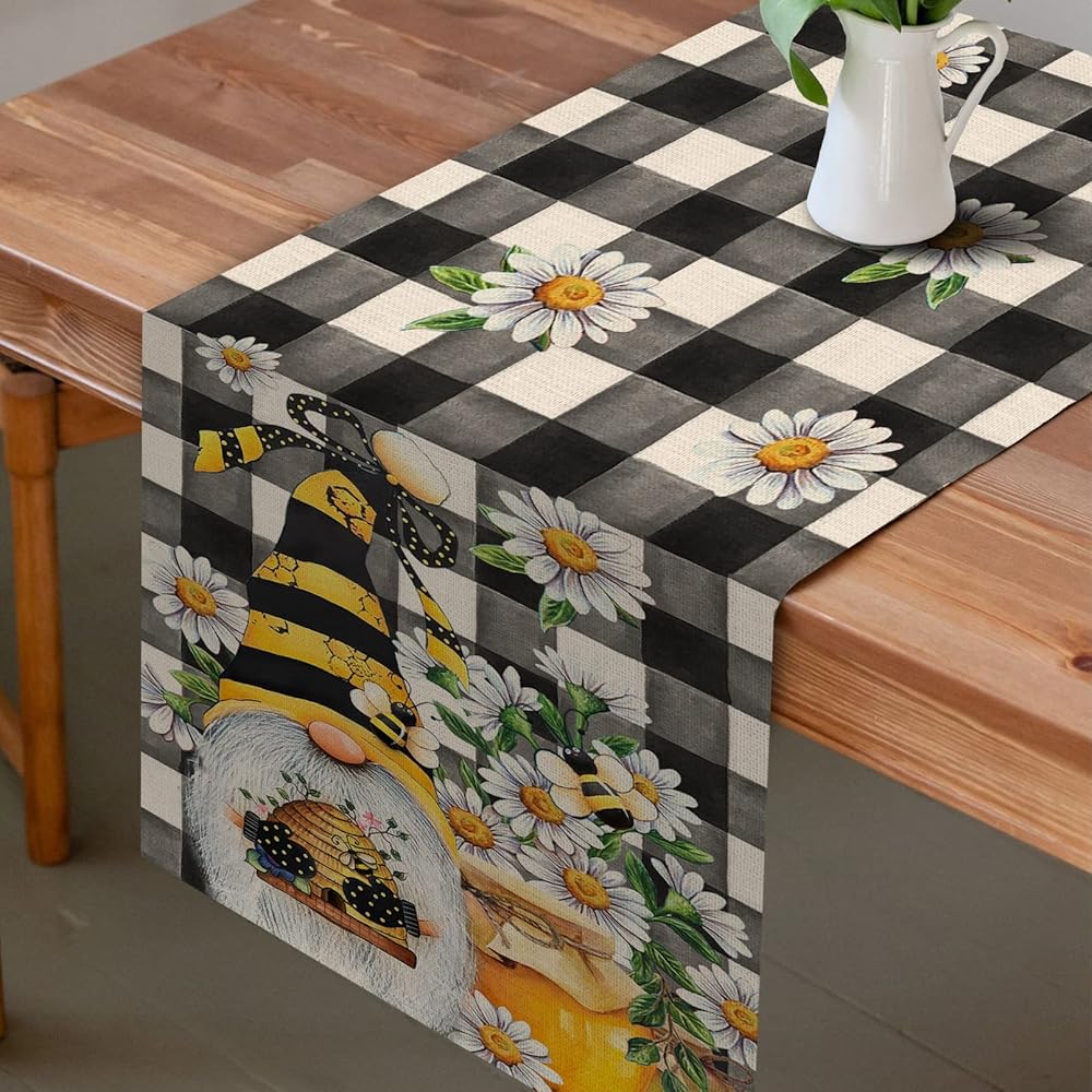 Farmhouse Table Runner: Our rustic checkered linen bumblebee honey table runner adopts the most popular element design nowadays, which can add fashion and vitality to your house. Use the various themed flower seasonal table decorations we provide to decorate your coffee table, dining table and kitchen to express your positive attitude towards life