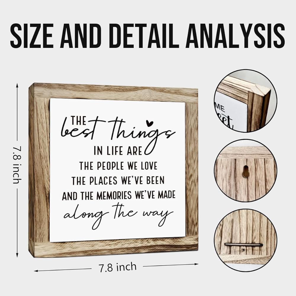 Dimensions:7.8×7.8×0.67inch; (20x20x1.7cm) Material: made of quality pine wood; with emotional text and beautiful graphics. This is looking for uniquely designed gifts for you and your family or friends, it is the best gift for your family.