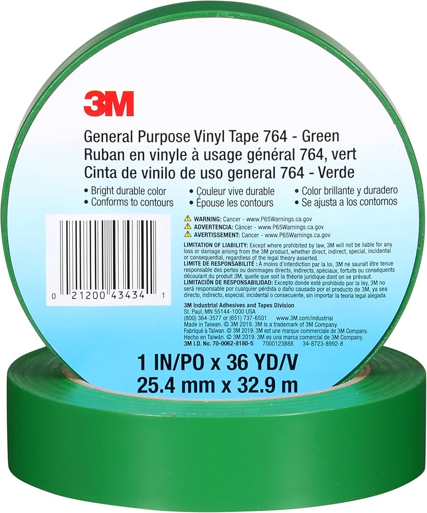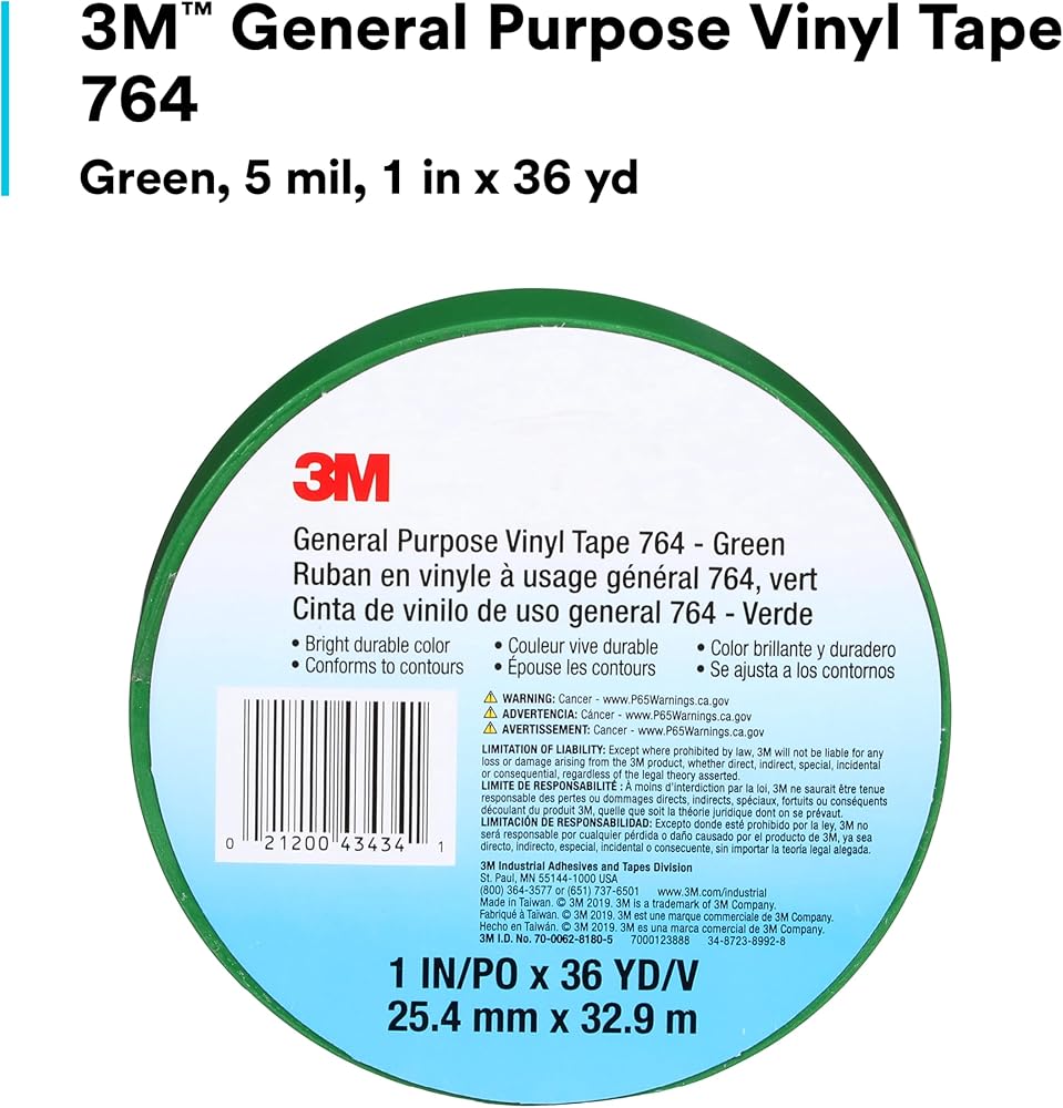 3M General Purpose Vinyl Tape 764 is an economical vinyl tape option for color coding, bundling and safety marking applications. We've designed this tape to resist wear, weathering and light abrasion while providing good instant adhesion to many surfaces. It is available in an array of distinctive colors, as well as transparent.