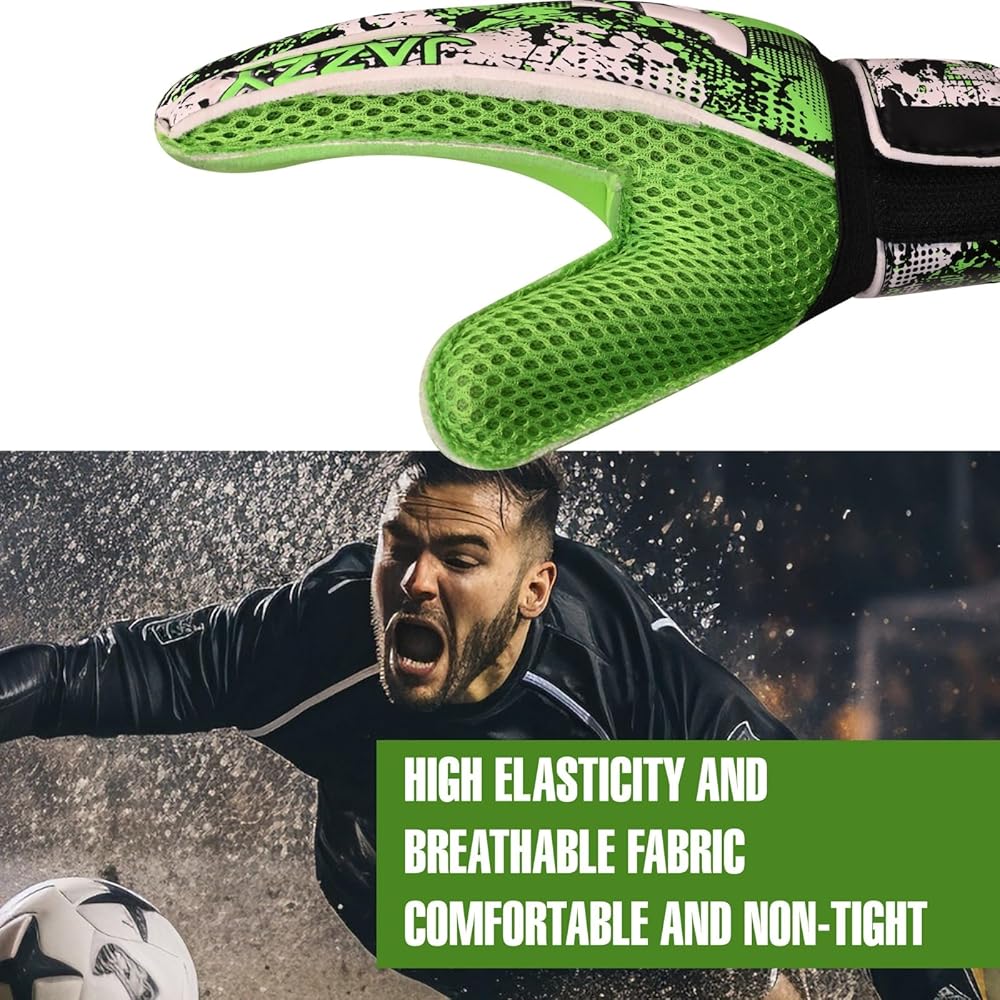SUPERIOR GRIP AND CONTROL: Soccer Goalkeeper Gloves with 4mm latex padding ensures a strong grip on the ball, providing goalkeepers with enhanced control and handling in all weather conditions. Goalie Gloves with Finger save with Latex palm offers excellent grip and durability, allowing for reliable performance during competitive play.