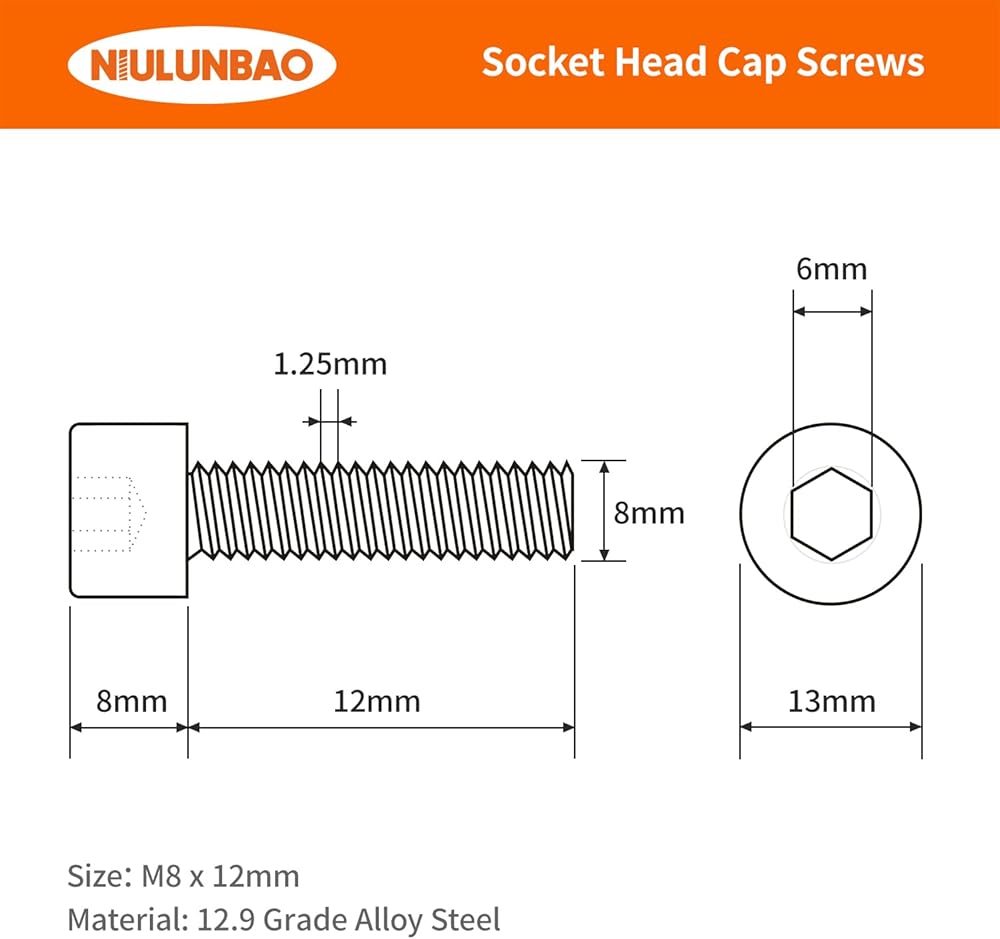 Package Included: 20 PCS Socket Head Cap Bolts/Screws (M8 x 25mm)