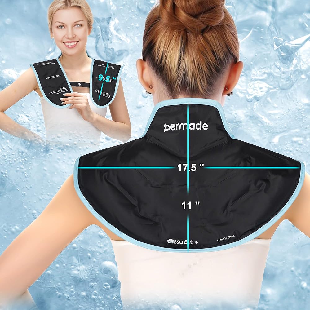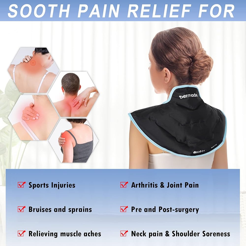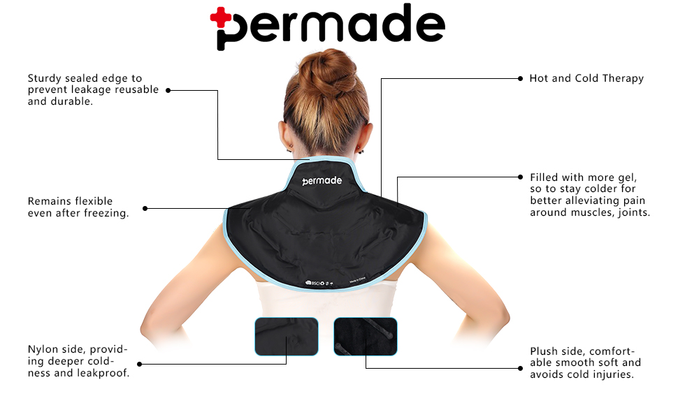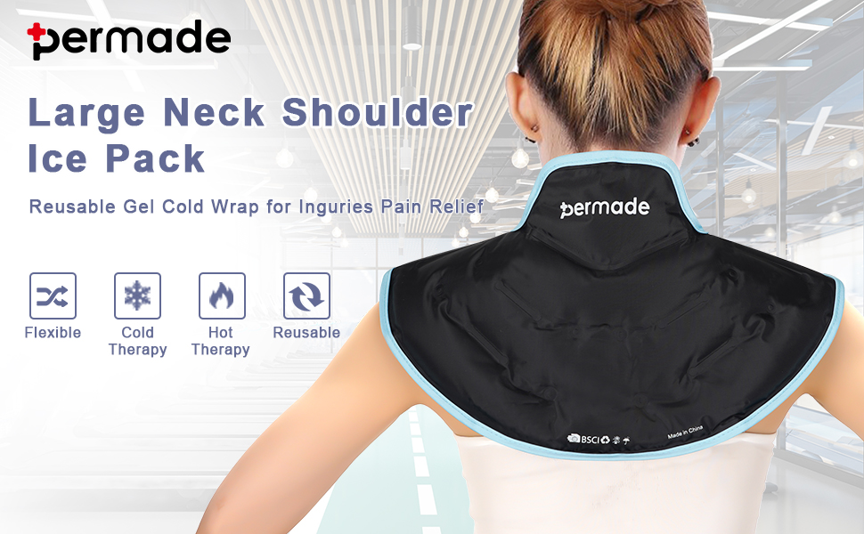 【Stay Cool for Long Time】Permade neck ice pack filled with 30% more gel, freezes quickly and stays cold for long. Shoulder wraps for pain covered a large area, providing full relief to your cervical and shoulder.