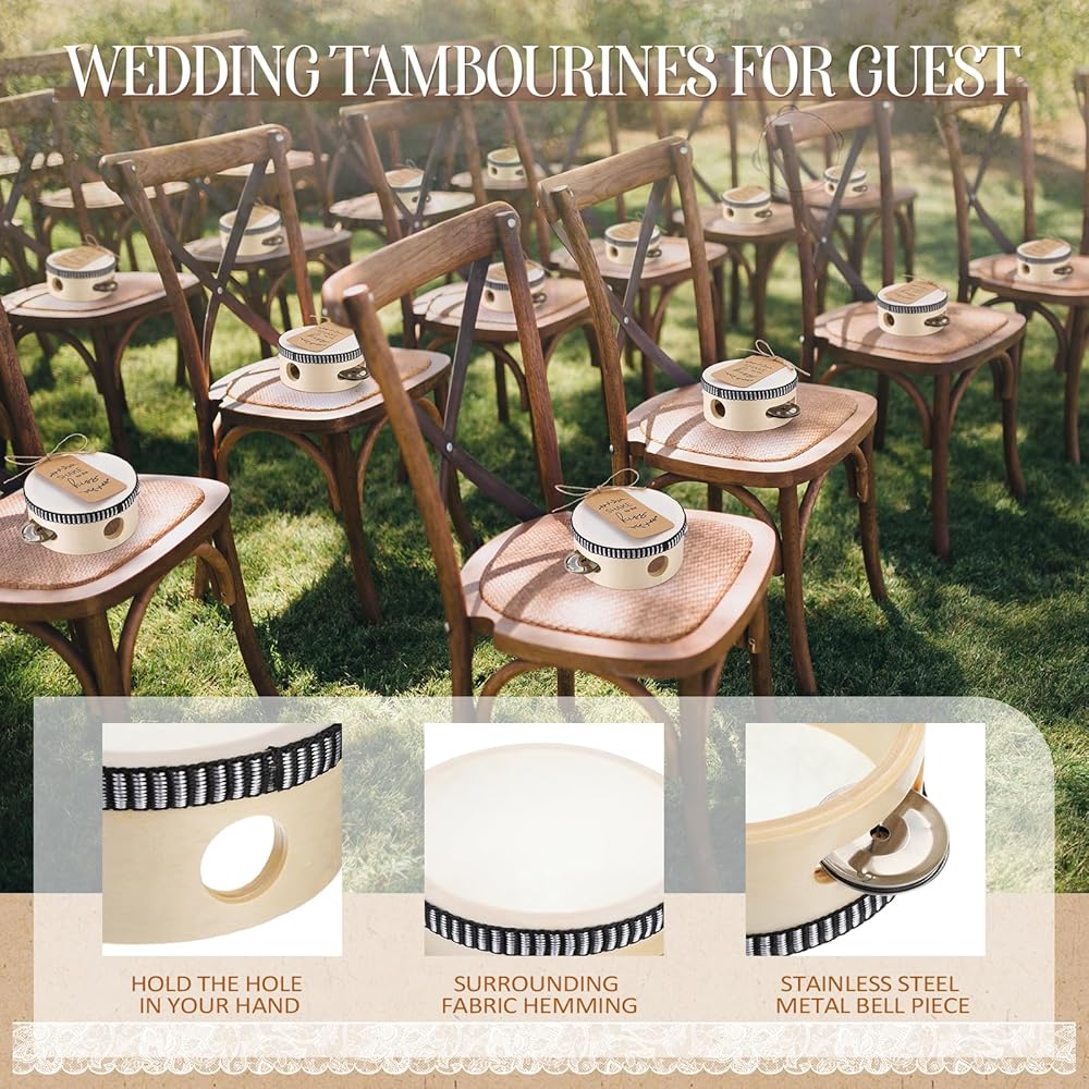 Though we've designed this small tambourine set primarily for weddings, you can use it for any occasion. Whether it's a birthday party, Christmas gathering, or even a weekend family meet up, these tambourines prove to be a practical addition that brings joy to all events.