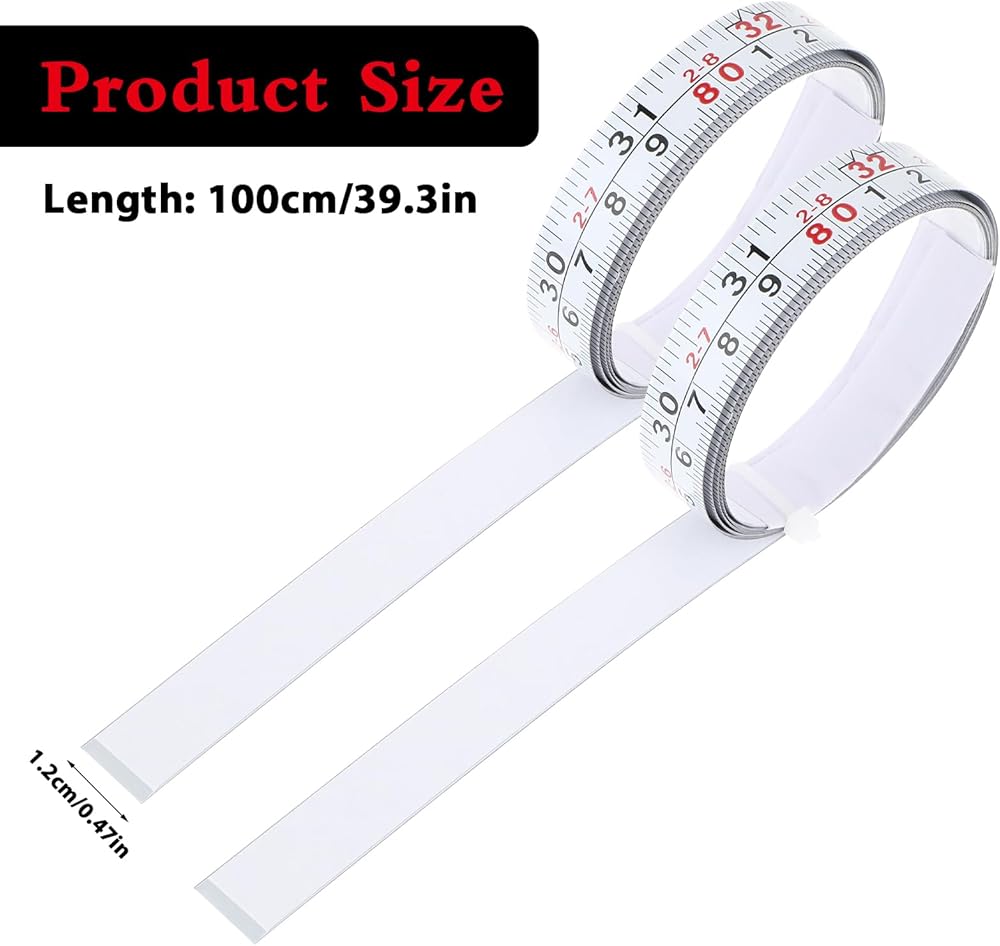 【What You Will Receive】: You will receive 2 pieces of white steel waterproof adhesive measuring tape from left to right. Length 39"/100cm, width 0.5"/1.2cm.
