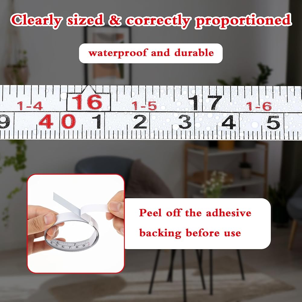 【Accurate Measurement】: The tape measure has metric and imperial scales. The adhesive measuring tape surface scales are brightly colored and easy to view. The scales are clear and precise. The surface is non-reflective and non-abrasive, making it easy to identify measurement data.