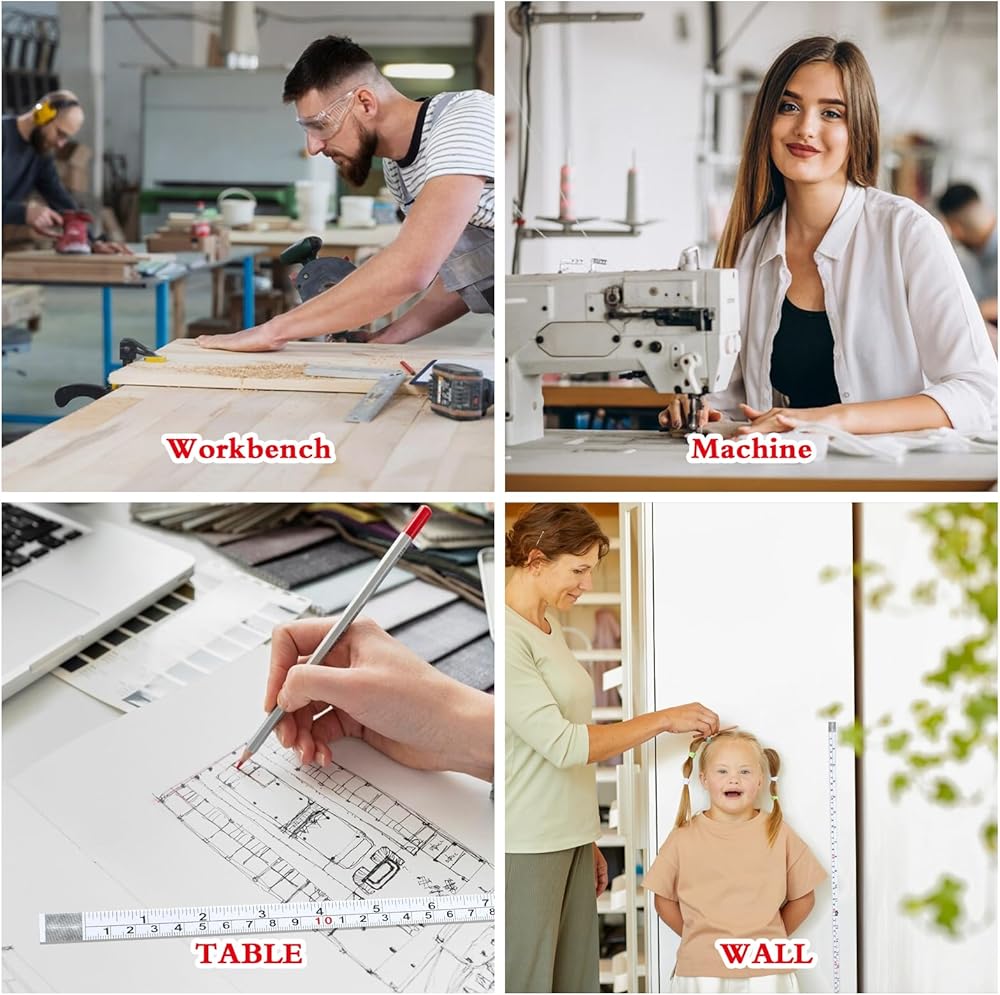 【Wide range of uses】: This adhesive tape measure has a wide range of applications and can be stuck to almost all work surfaces, such as workbenches, sewing machines, drafting tables, rip fences and craft tables. Measuring stick tape sticks easily to almost any surface, providing convenience and easy measurement.