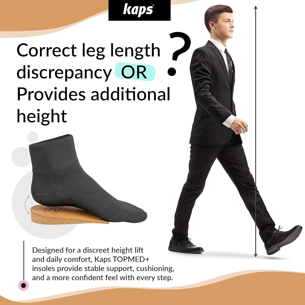 UNIVERSAL: Whether you are suffering from leg-length discrepancy, plantar fasciitis, achilles tendon injury, or simply you want to look taller – Kaps Topmed Plus pad is what you need.