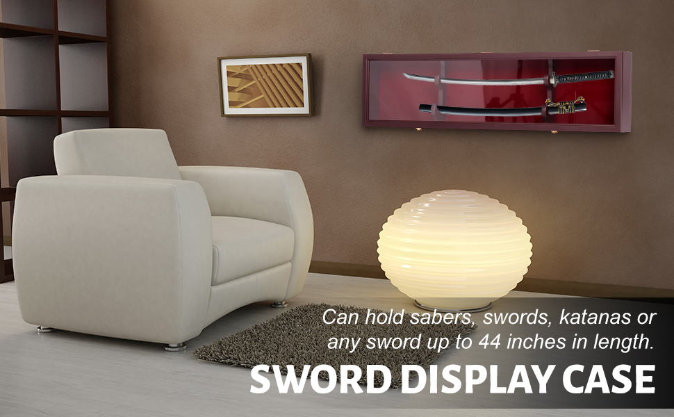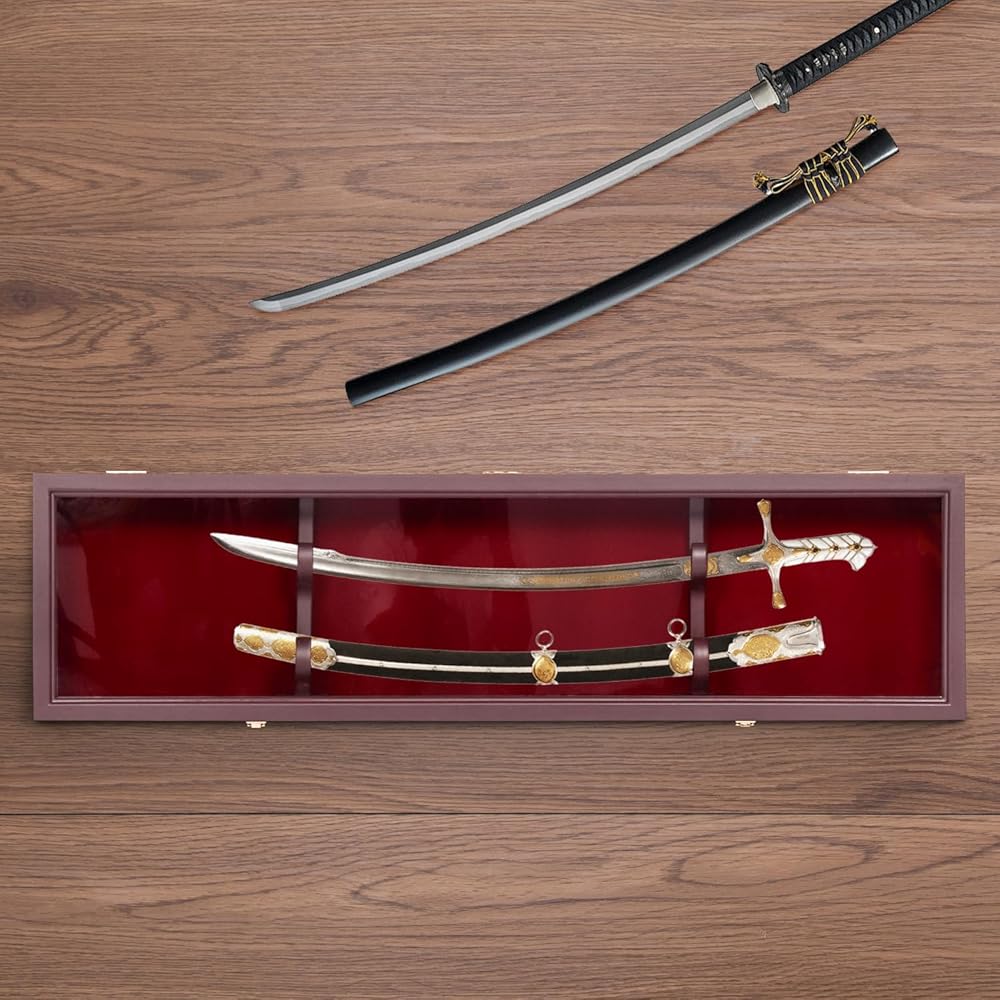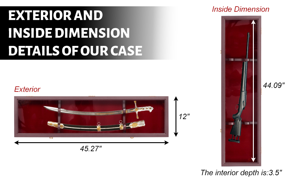 【Proper in Size】Dimensions :45" L X 12" H X 4.8" D, Inside Dimension: 44" L X 10.8" H X 3.5" D. (Swords and rifles are for display only and are not included),Please check the size of your sword before purchasing.