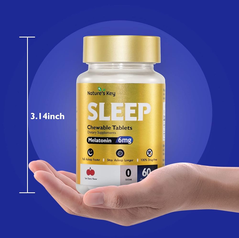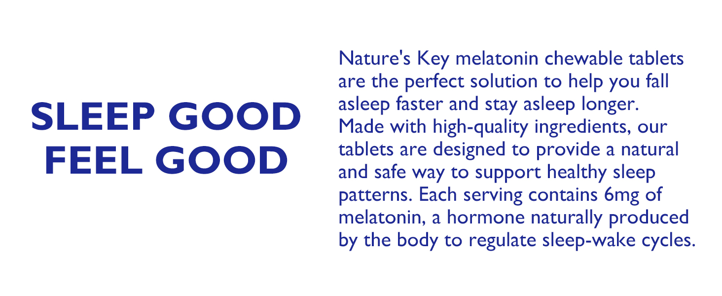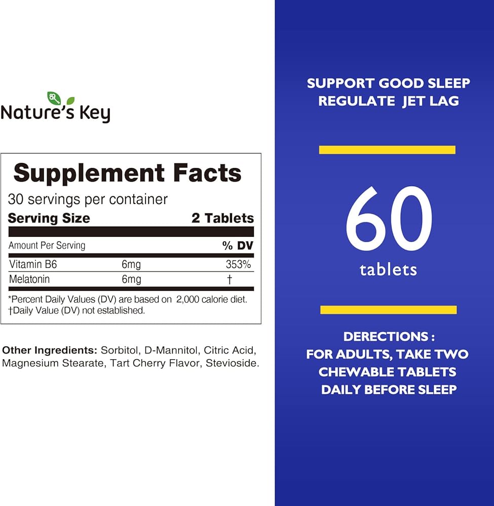 【EASY TO TAKE】Nature‘s key melatonin chewable tablets are perfect for those who have difficulty swallowing pills or prefer a more convenient way to take melatonin. Simply chew and swallow two tablets before bedtime to support your body's natural sleep process. And with 60 tablets per bottle, you'll have a one-month supply to keep you feeling rested and refreshed.