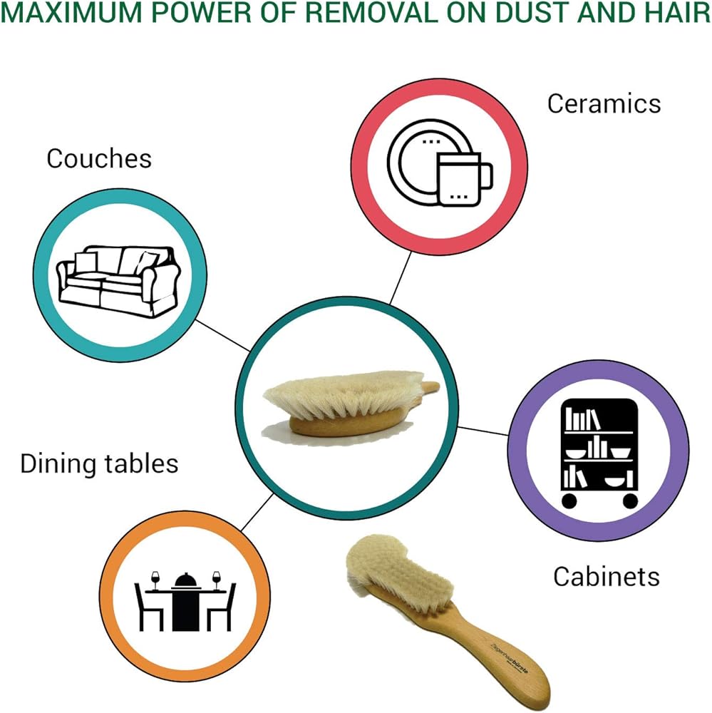 فرشاة تنظيف الأثاث من فالنتينو جاريمي | أريكة المنزل، رف الكتب، مجموعة حاملات تجميع الغبار أو شعر الحيوانات الأليفة | شعيرات شعر الماعز الأصلية - صنع في ألمانيا