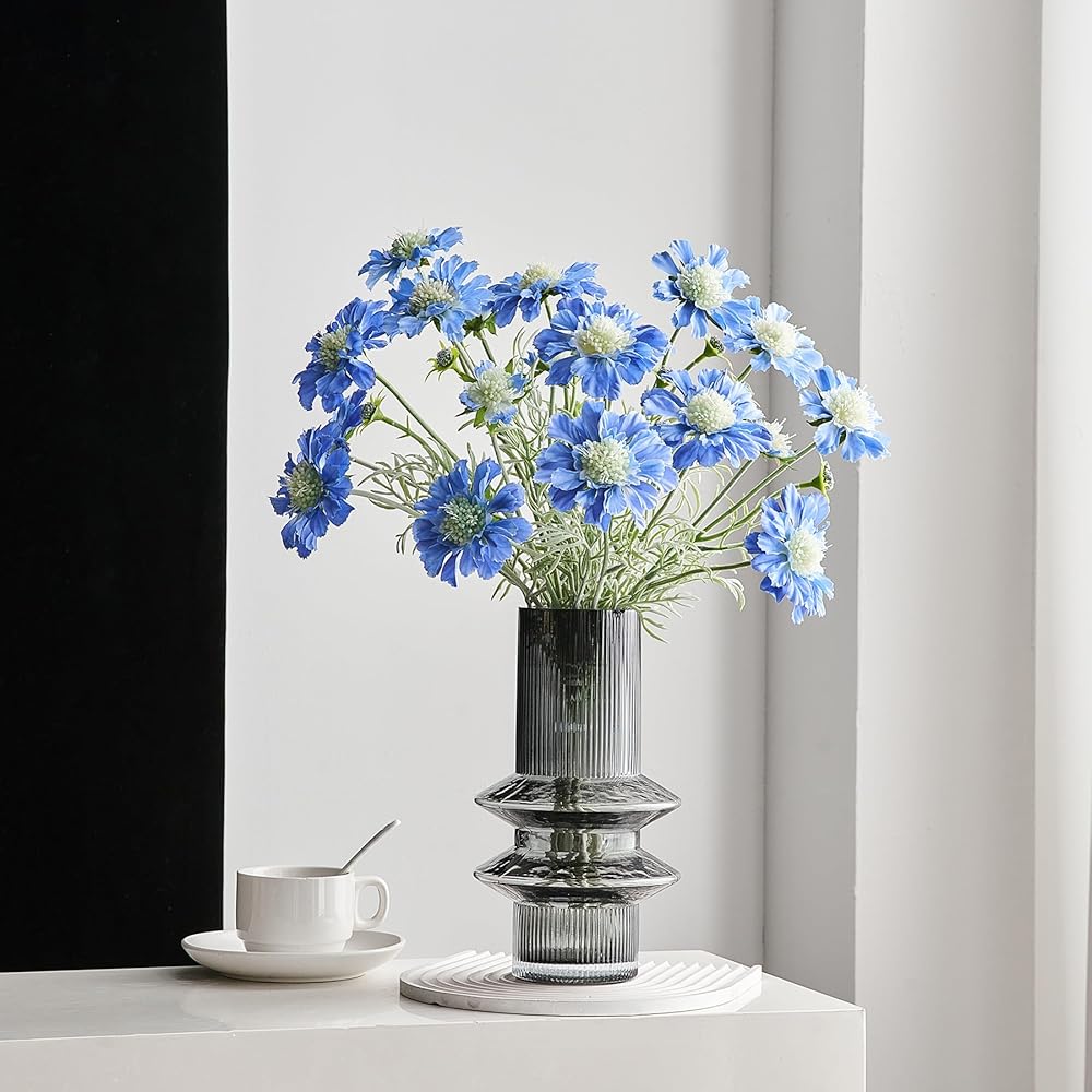 Simple Home Decoration: This unique glass vase can be used for flower arrangement or as a stand-alone vase, suitable for home decoration, living room, bedroom, kitchen, dining table, office, coffee table, fireplace, study, bathroom, bookshelf, bookcase, entryway, dining room decoration, can be used to display your favourite flowers, roses, lilies, sunflowers and so on, subtle and elegant design can complement any environment.