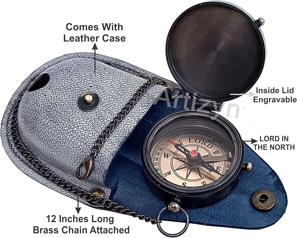 • This Handy pocket size compass is convenient to carry anywhere. Size of Compass : 2" x 2" x .75" Inches; Chain Length : 12" Inches; Leather Case Size : 2.6" x 1.2" x 2.6" Inches. It Is a portable device that can be easily carried along in a backpack and has a compact design. Perfect gift for Travelers, Nautical Collector, Architects & Table Décor. It is carefully packaged to ensure you receive it in perfect condition directly from the manufacturer.